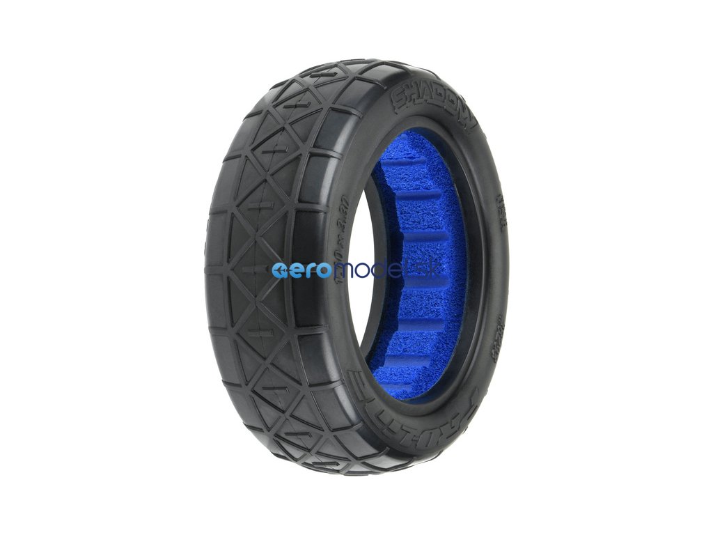Pneumatiky Pro-Line Shadow 2WD 2.2" Off-Road Buggy – přední, pro RC modely aut 1:10. Rozměry: ø84x28 mm. Směs MC (Clay). Vložka Closed Cell.