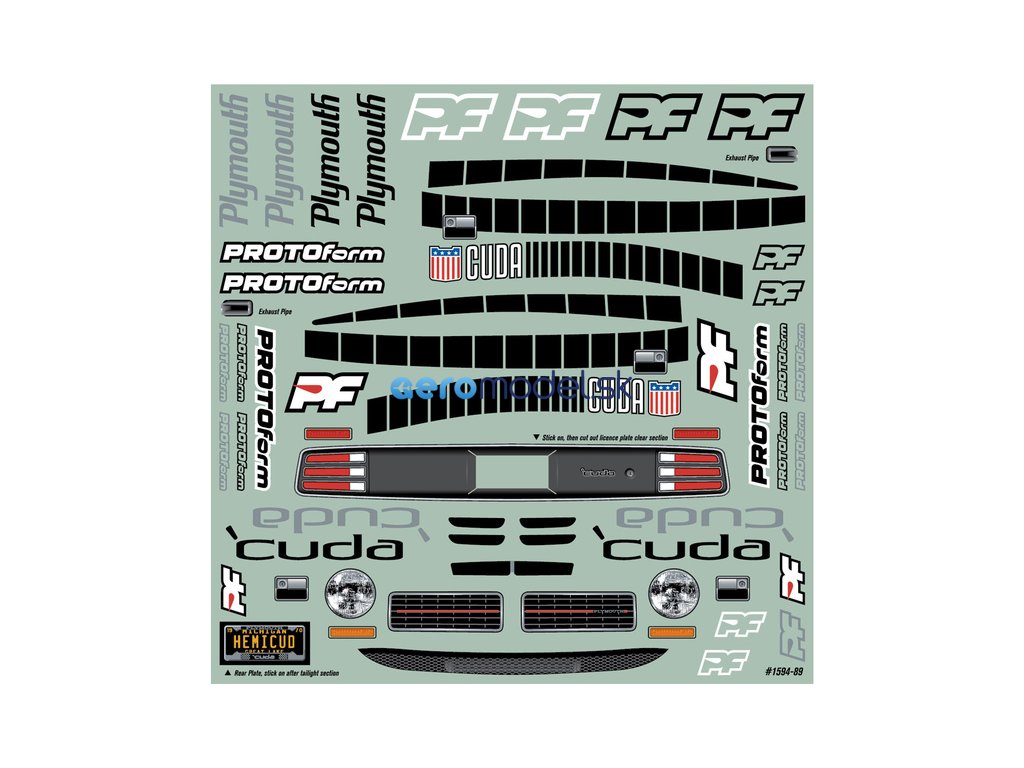 Karosérie Protoform 1970 Plymouth Barracuda čirá, pro RC modely aut 1:10, délka 450mm, šířka 200mm, výška 108mm, rozvor 260 mm. Vyrobeno z odolného lexanu, obsažen arch samolepek. Vraťte se do slavných časů amerických silničních závodů s karoserií legendárního vozu.