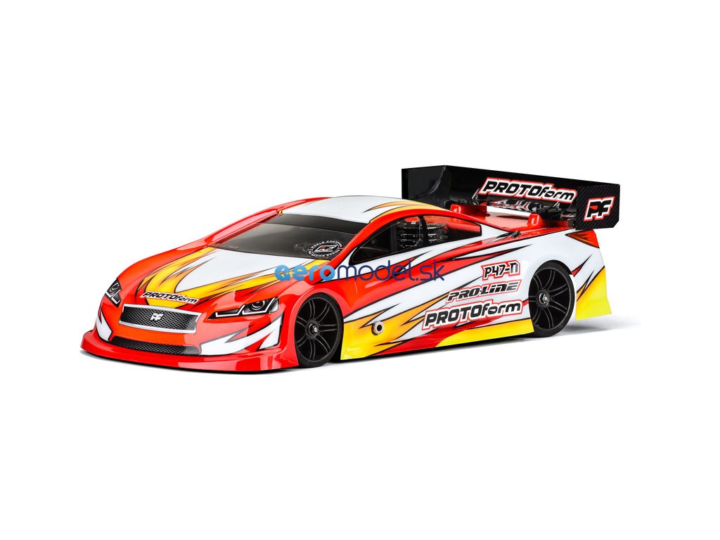Karosérie Protoform čirá P47-N: 200mm Touring Car pro RC modely aut 1:10, rozvor 258mm, délka 434mm, šířka 203mm. Vyrobeno z odolného lexanu, montážní příslušenství.