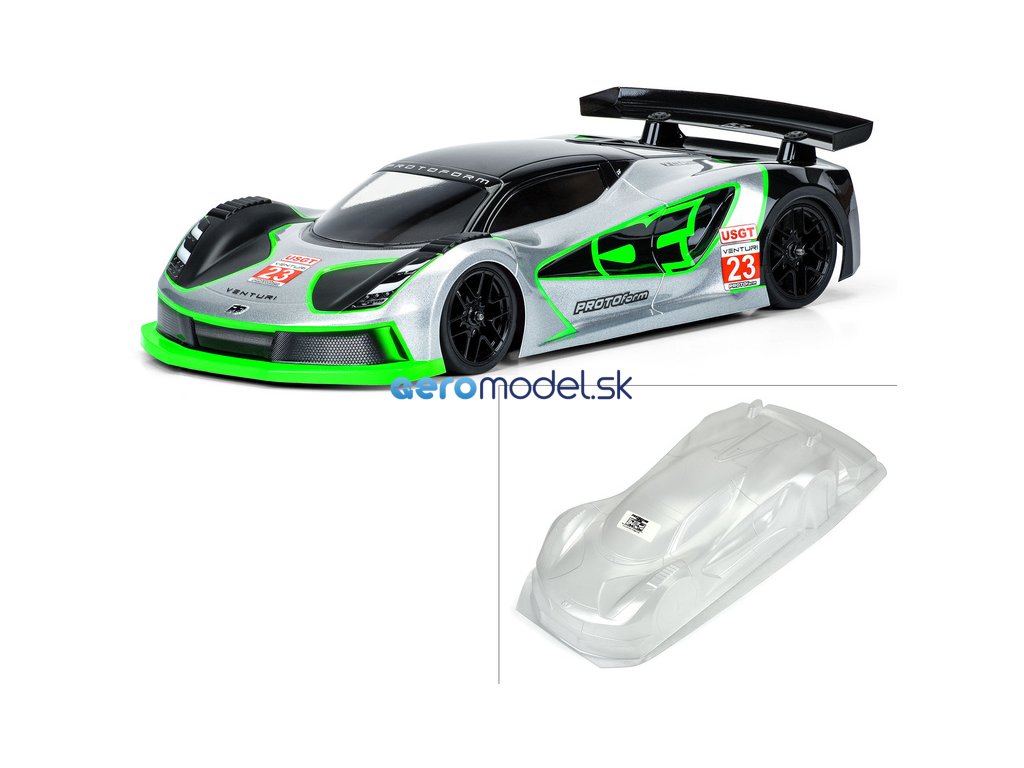ROTOform karosérie 1:10 Venturi GT (On-road šířka 190mm) s extravysokým přítlakem a nízkým těžištěm. Čirá, nenabarvená karoserie. Vyrobeno z odolného lexanu (cca 90g). Kabina posunutá dopředu zajistí výjimečné jízdní vlastnosti. Dvě polohy křídla.