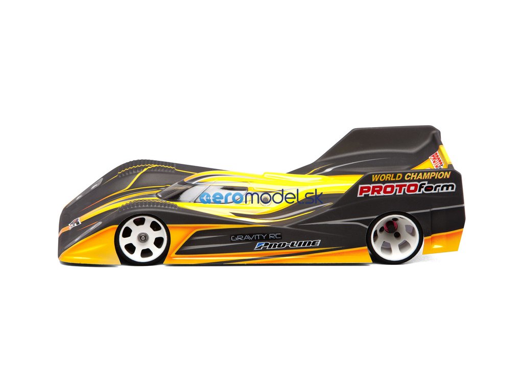 Karosérie Protoform AMR-12 PRO: On-Road Car lehká čirá, pro RC modely aut 1:12, rozvor 198mm, délka 325mm, šířka 173mm. Vyrobeno z odolného lexanu.