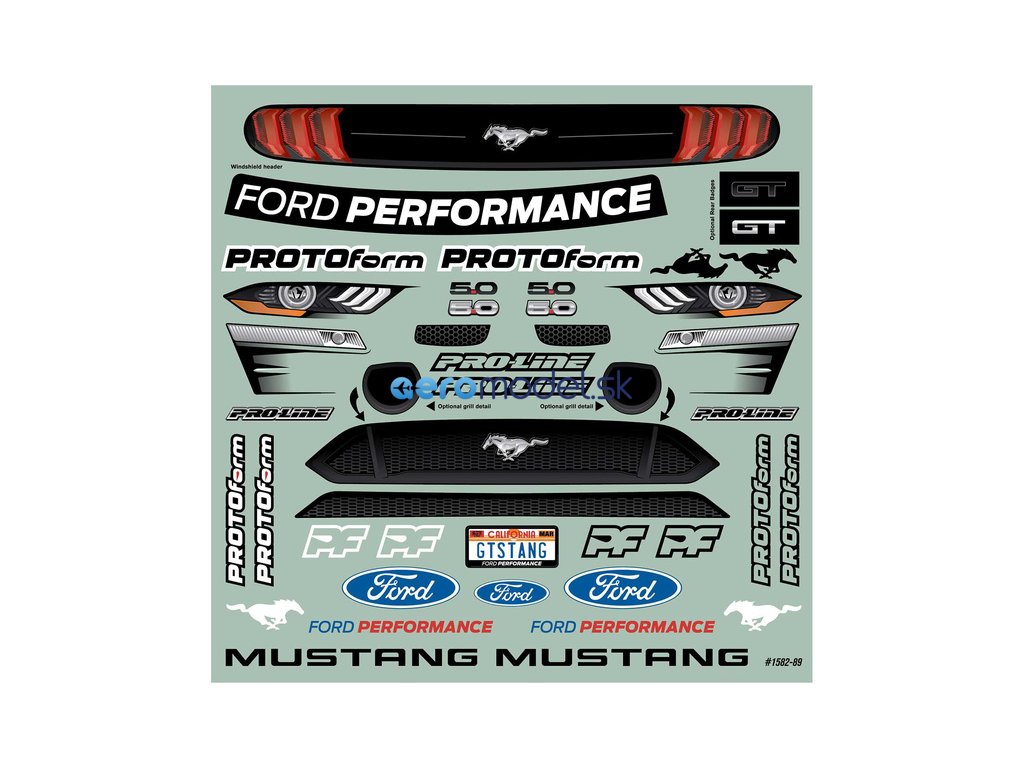 Karosérie Protoform 2021 Ford Mustang: Vendetta čirá, pro RC modely aut 1:8, rozvor mm, délka mm, šířka mm. Vyrobeno z odolného lexanu, montážní příslušenství.