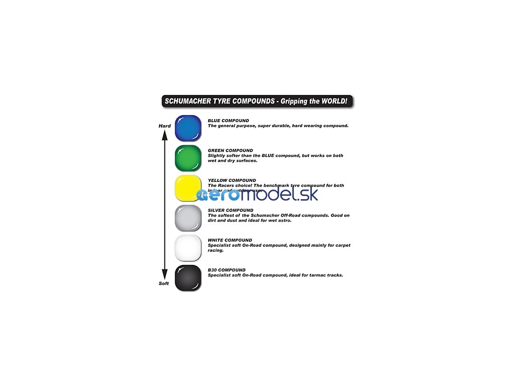 Vzhledem k požadavkům závodních koberců, které tlačí pneumatiky na hranici jejich možností, vám Schumacher nabízí alternativu k oblíbené pneumatice Cactus a přináší pneumatiku Azami. Vývojový tým Schumacher vyvinul středovou část s vysokou hustotou pinů, která zajišťuje odolnost a přilnavost na kobercích typu CRC/EOS.