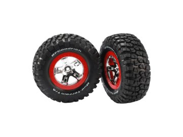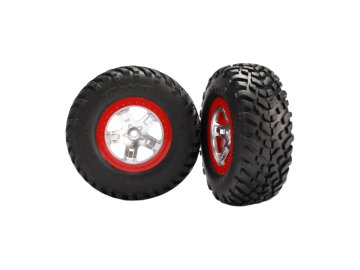 Kompletní zadní kola pro 2WD, přední i zadní pro 4WD auta Traxxas Slash. Chromované disky s červenými ráfky a...