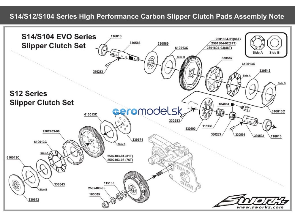 SWORKz obložení spojky High Performance, uhlíkové, 3 ks.