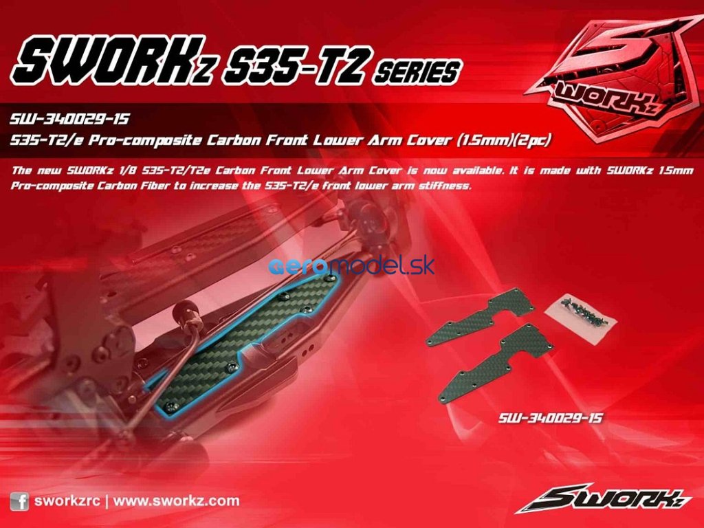 SWORKz uhlíková vzpěra předního spodního ramene, 1,5mm, včetně šroubů, 2 ks.