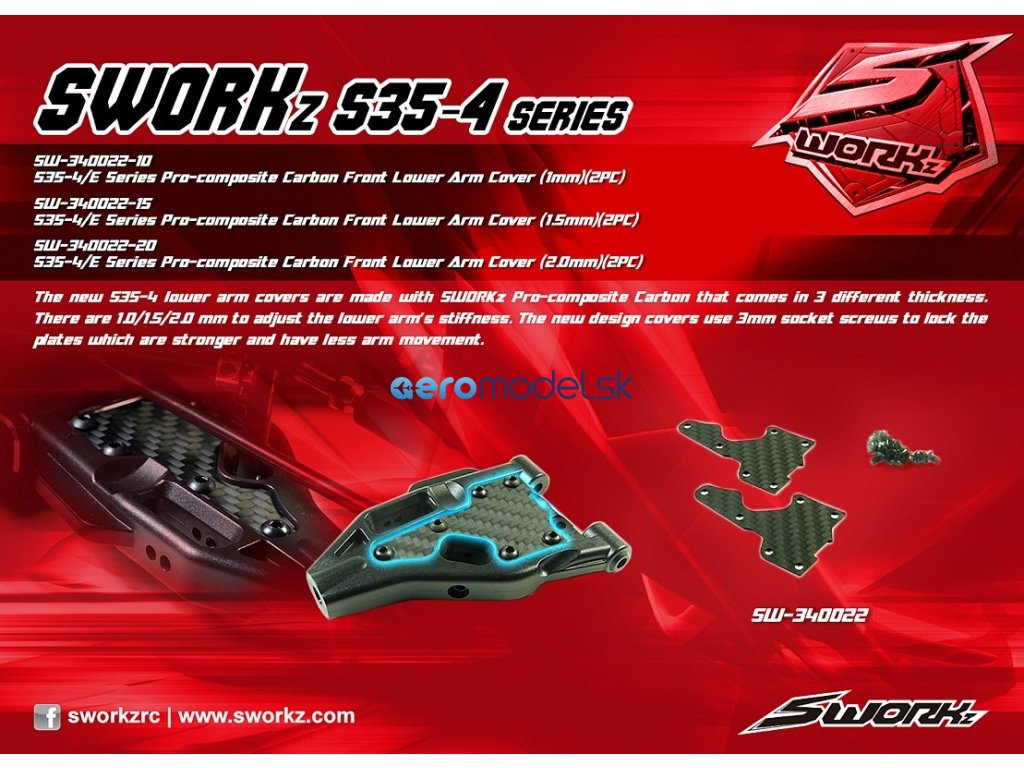 SWORKz uhlíková vzpěra spodní předního ramena, 2,0mm, včetně šroubů, 2 ks.