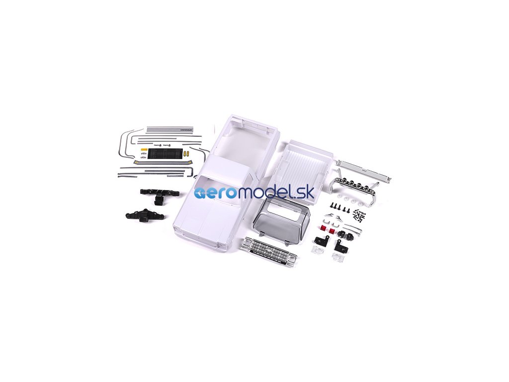 Traxxas karosérie Chevrolet K10 1979 nenabarvená bílá, kompletní (nesestavená), pro RC model auta TRX-4M s delším rozvorem 162 mm (High Trail). Bez-sponková karoserie v měřítku 1:18 z ABS, včetně čirých oken, přední mřížky, bočních zrcátek, klik dveří a další. Vyžaduje přední a zadní nárazník TRA9835.