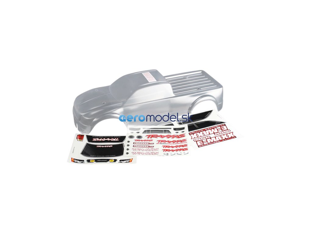 Traxxas karosérie čirá, samolepky: E-Maxx Brushless