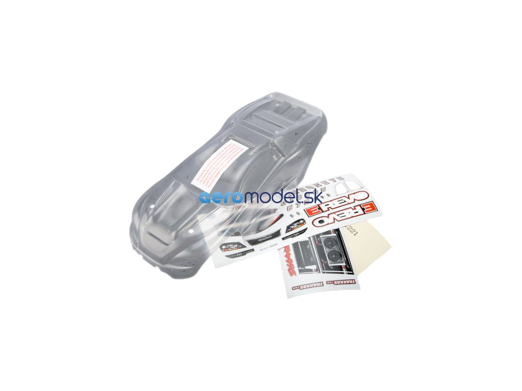 Traxxas karosérie čirá, samolepky: E-Revo 1:16