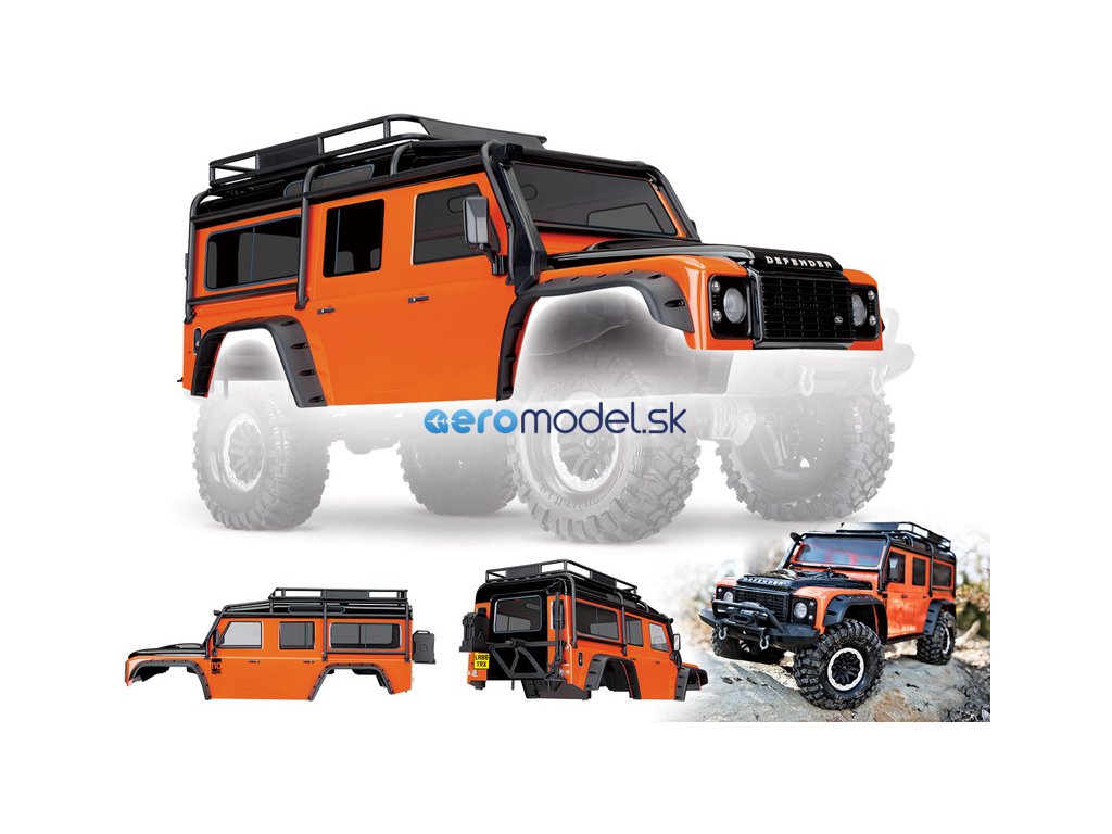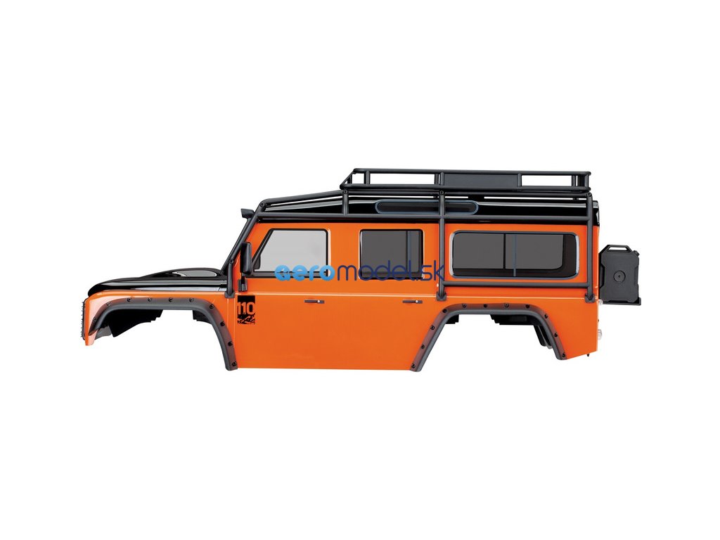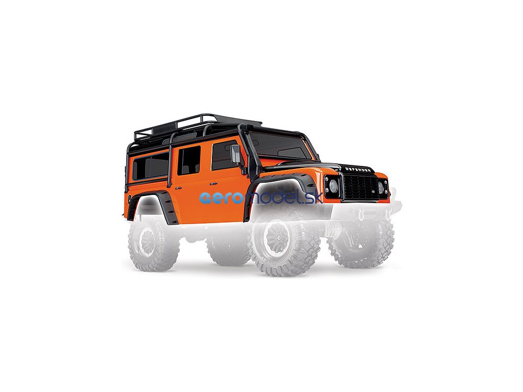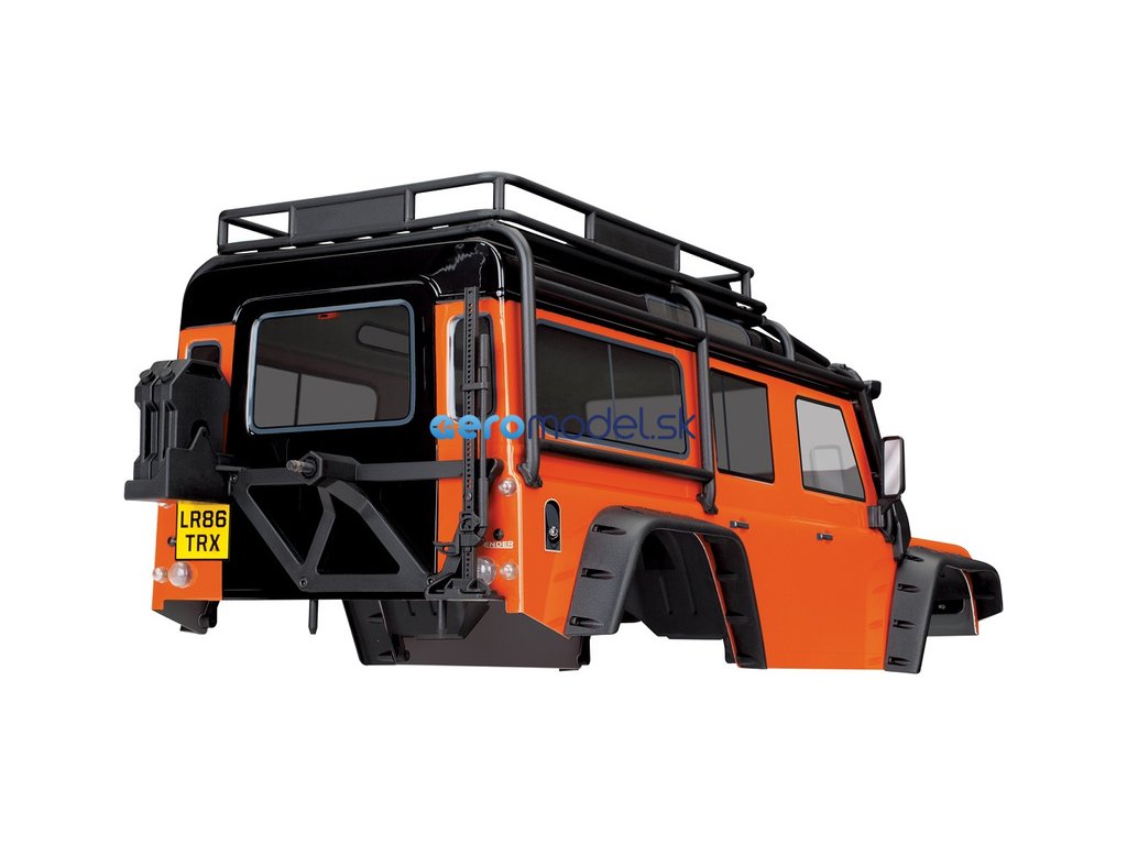 Kompletní karosérie pro RC model auta Traxxas Land Rover Defender Adventure. Oranžová karoserie Adventure s černou kapotou a doplňky, čirá skla (vzadu tónovaná), lemy blatníků, šnorch, rezervní kolo a nádrže. Tato speciální edice Adventure byla vydaná k výročí ukončení výroby původního vozu Land Rover Defender. Karoserie je kompletně sestavená, nabarvená a připravená na šasi TRX-4 s rozvorem 324 mm.