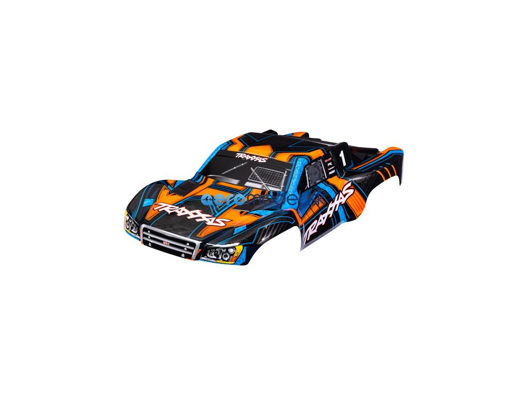 Traxxas karosérie Slash 4X4 oranžovo-modrá (bezsponková) (také vhodná pro Slash VXL a Slash 2WD). Nabarvená, sestavená karoserie, včetně bezsponkového držáku pro upevnění. Pro starší šasi Slash se sponkovým systémem upínaní karoserie je vyžadován díl #6940 (Slash 2WD), nebo díly #6976 a #10125 (Slash 4x4).