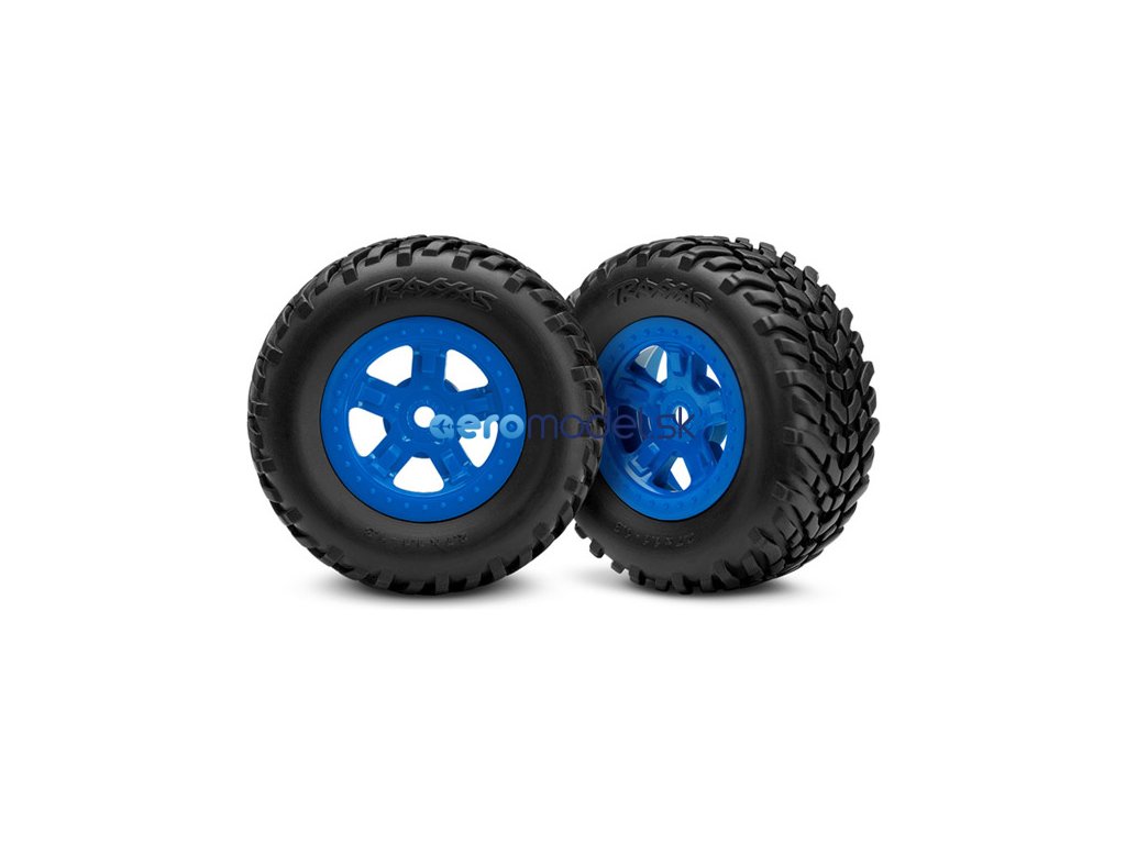 Kompletní univerzální kola pro RC auta. Pěti-paprskový disk SCT v modrém provedení s nalepenými pneumatikami SCT off-road (2ks v balení).