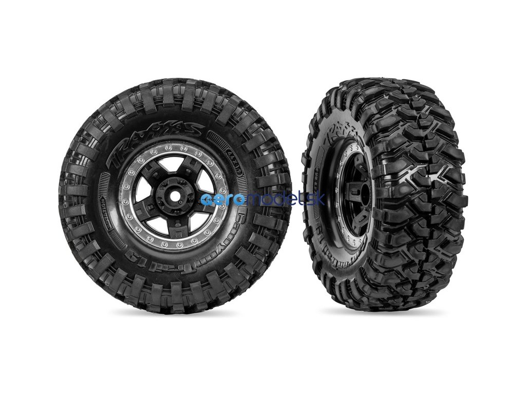 Kompletní univerzální kola pro RC modely aut TRX-4. Černé Disky TRX-4 Sport s pneumatikami Canyon Trail (2 ks v balení).