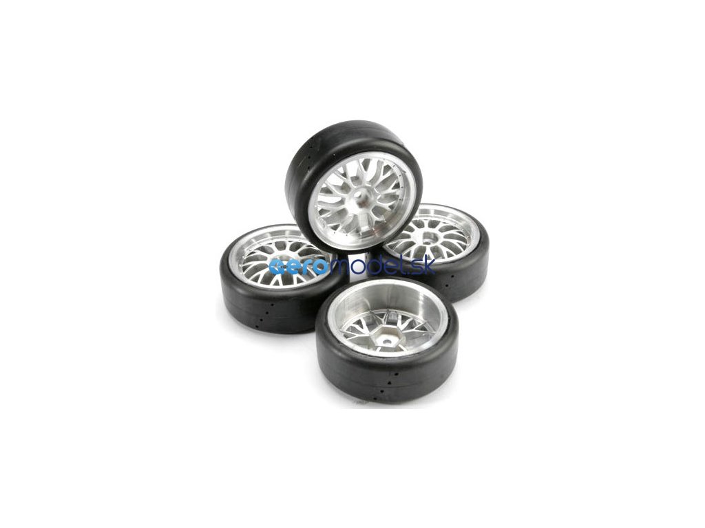 Kompletní kola univerzální (2x levá, 2x pravá) On-Road ze středně tvrdé směsi. Pro auta Traxxas 4-Tec.