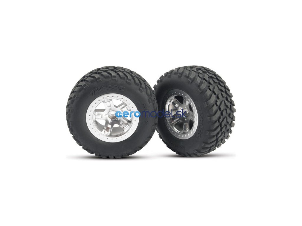 Kompletní přední kola pro 2WD auta Traxxas Slash. Saténový disky s nalepenými pneumatikami Off-Road a vložkou.