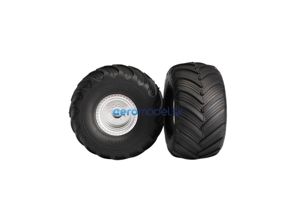 Kompletní zadní kola Traxxas Terra Groove pro RC modely aut. Disk v provedení Saténový chrom, pneumatiky Terra Groove.