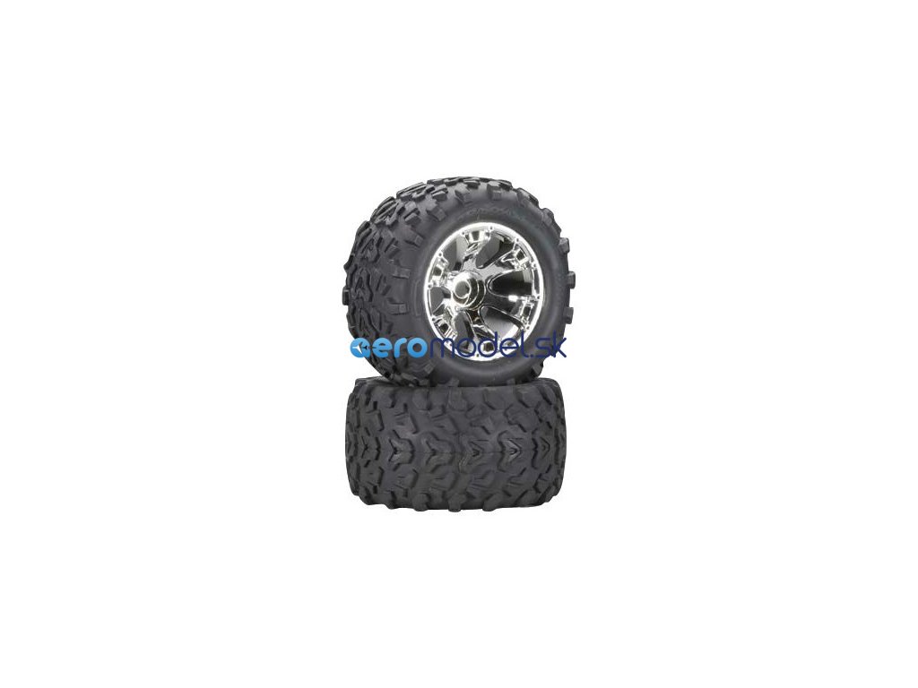 Kompletní přední kola pro RC auta 2 WD. Chromované disky Geode s nalepenými pneumatikami Canyon a vložkou.