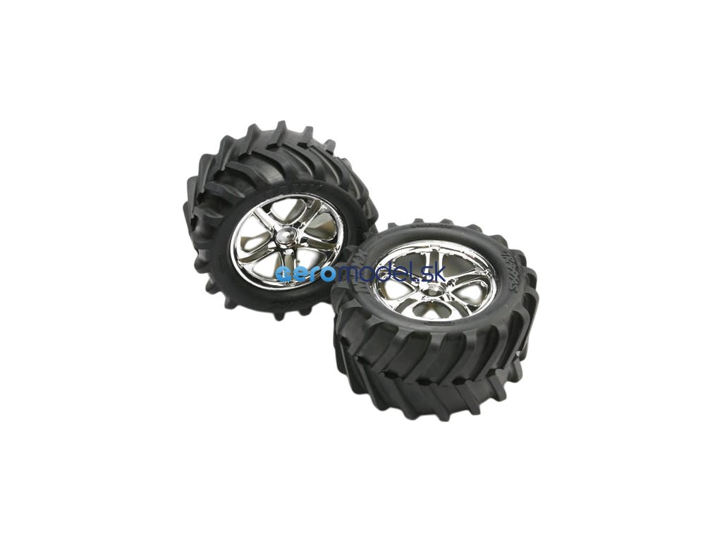Traxxas kolo 3.8", disk Split Spoke H14 stříbrný, pneu Maxx Chevron (pár)