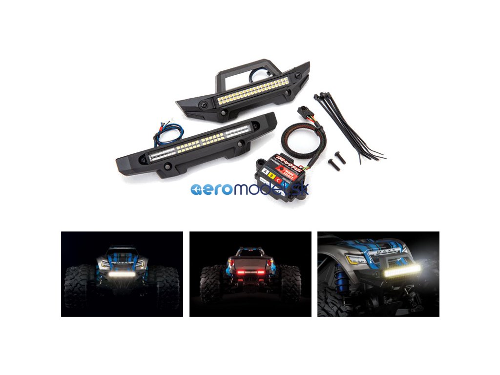 Traxxas kompletní LED osvětlení pro RC model auta Traxxas 1:8 Maxx. Posuňte tento brutální, hbitý model na novou úroveň a užijte si dech beroucí jízdu ve dne i v noci. Přední LED lišta v nárazníku bezpečně nasvítí cestu před Vámi, zatím co zadní brzdová lišta dodá modelu šmrnc. Funkční brzdová světla se spínají skutečně jen při brzdění a ne při zpátečce. Jednoduše připojte jednotlivé světelné lišty do napájecí řídící jednotky a tu do regulátoru. Vše je jednoduché, intuitivní a voděodolné*.
