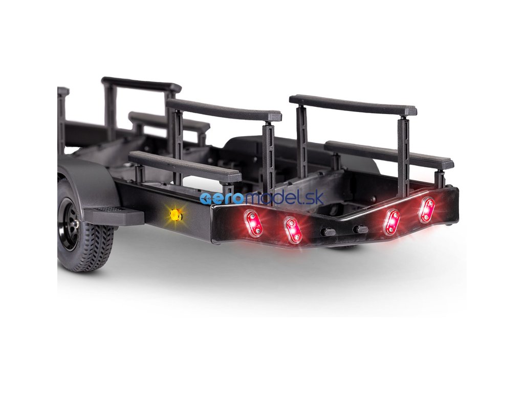 Přívěs je připraven pro instalaci dálkově ovládaného elektrického navijáku, se kterým můžete loď přitáhnout na korbu. Naviják se napájí z modelu auta.