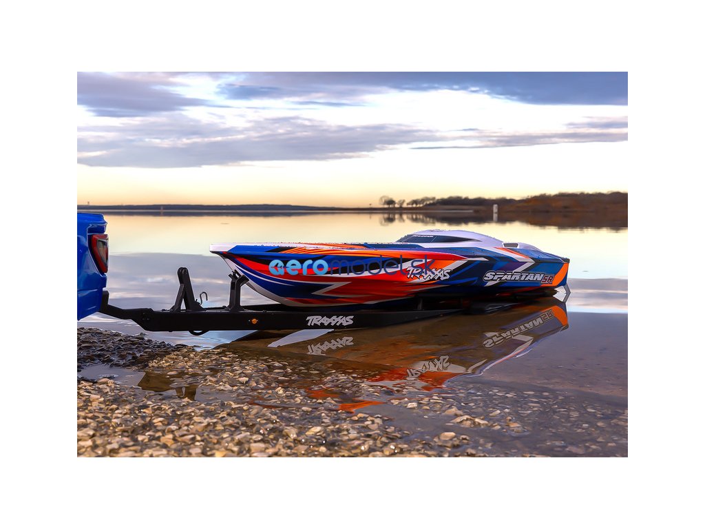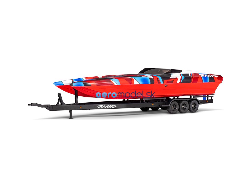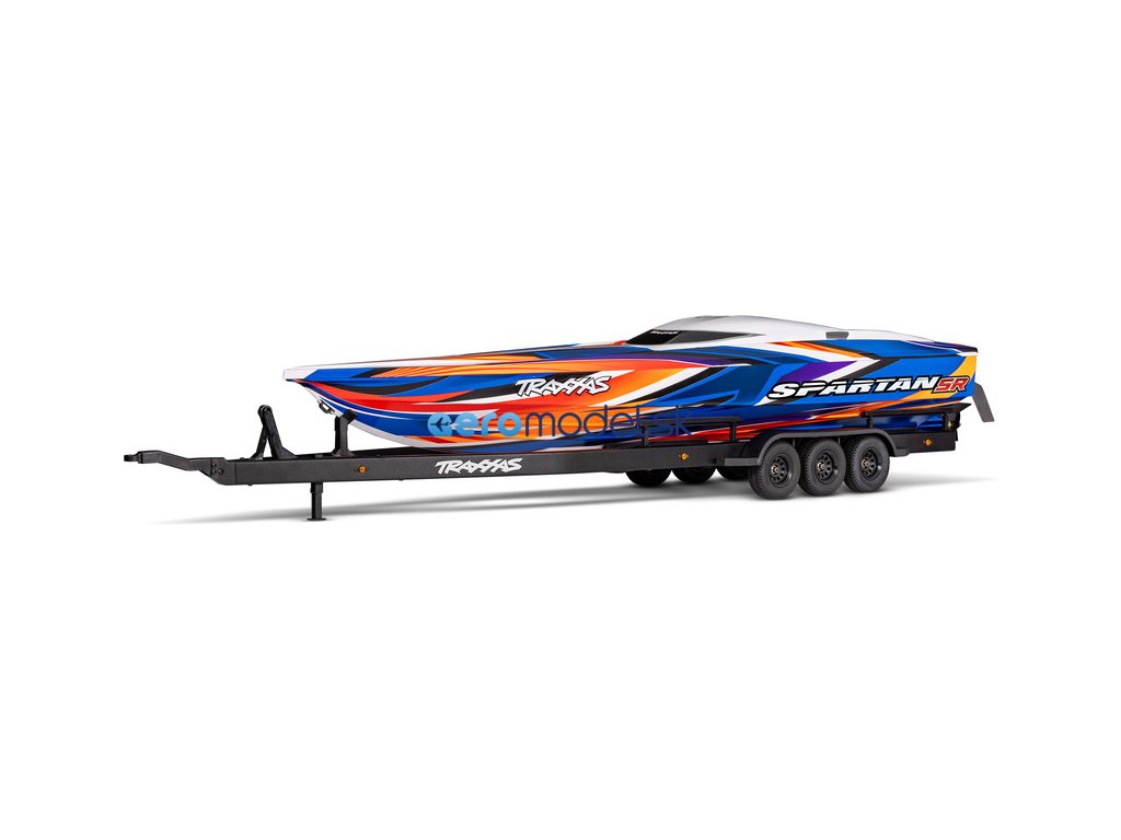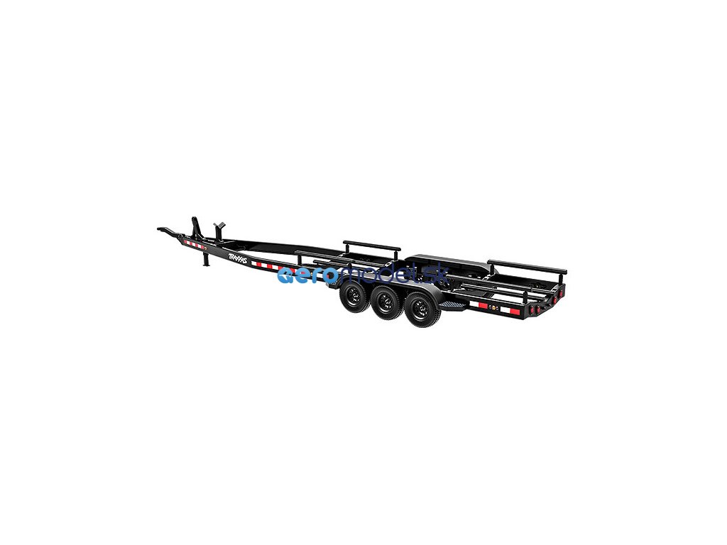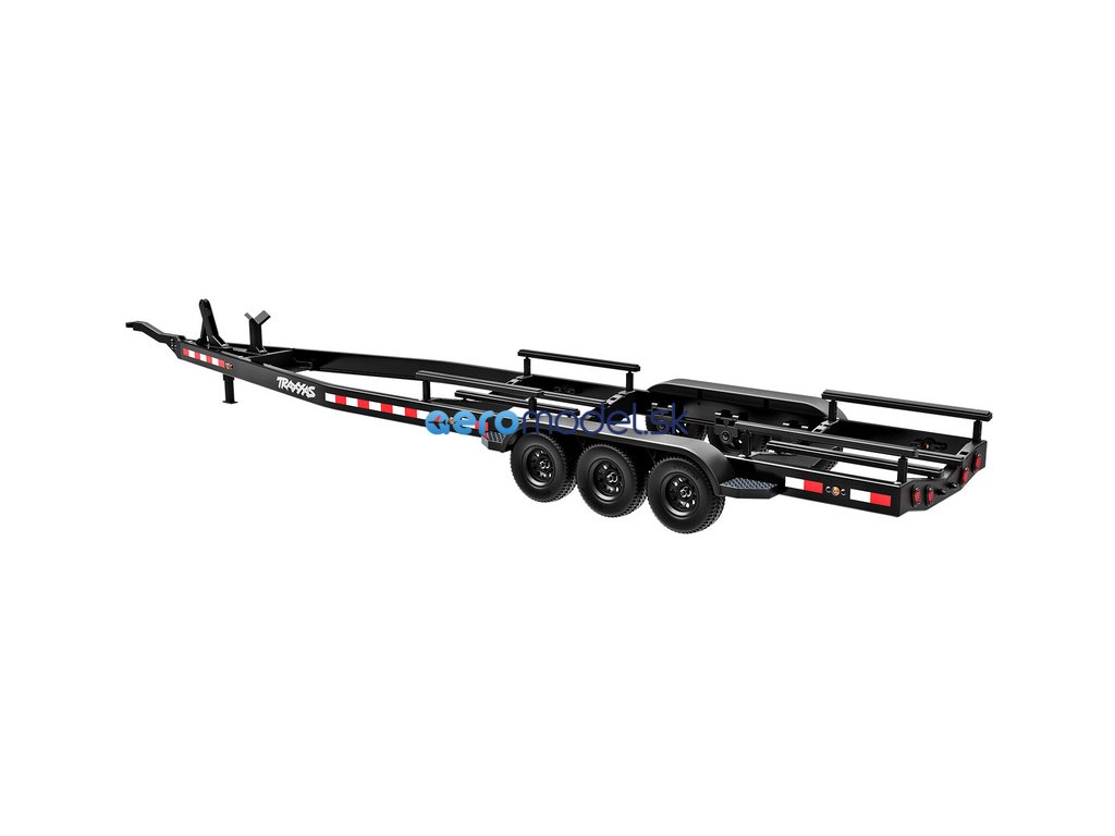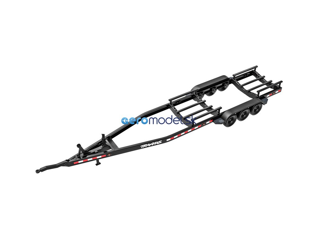 Přepravujte svůj člun Traxxas k vodě stylově s detailním třínápravovým přívěsem. Nastavitelné držáky podpěr na korbě se přizpůsobí klasickému trupu lodi Spartan nebo trupu katamaránu DCB-M41. Elastické úchyty bezpečně připoutají loď k lehkému hliníkovému rámu po celé délce přívěsu. Pomocí obsaženého výškově nastavitelného tažného zařízení můžete přívěs táhnout za RC modely aut Traxxas TRX-4 / TRX-6* (vč. High Trail) a Ford Raptor R. Můžete tak s lodí na přívěsu zacouvat přímo do vody.