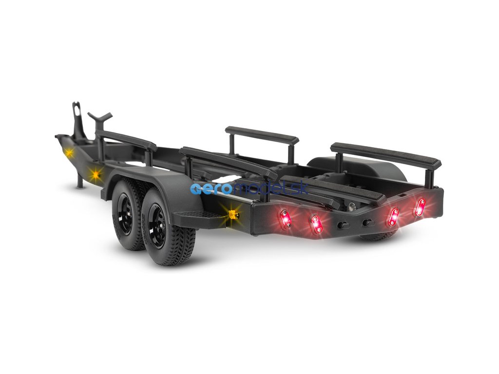Přívěs je připraven pro instalaci dálkově ovládaného elektrického navijáku, se kterým můžete loď přitáhnout na korbu. Naviják se napájí z modelu auta.
