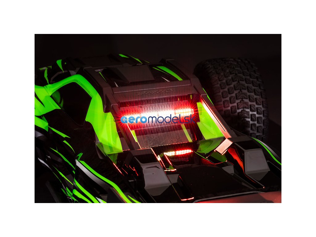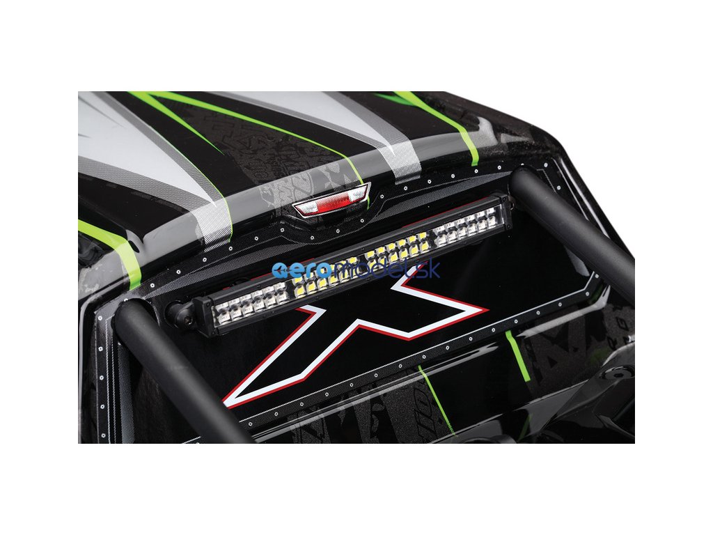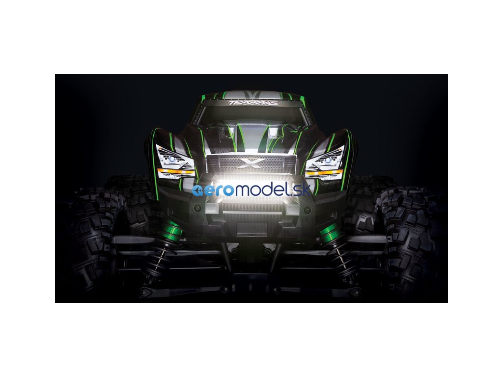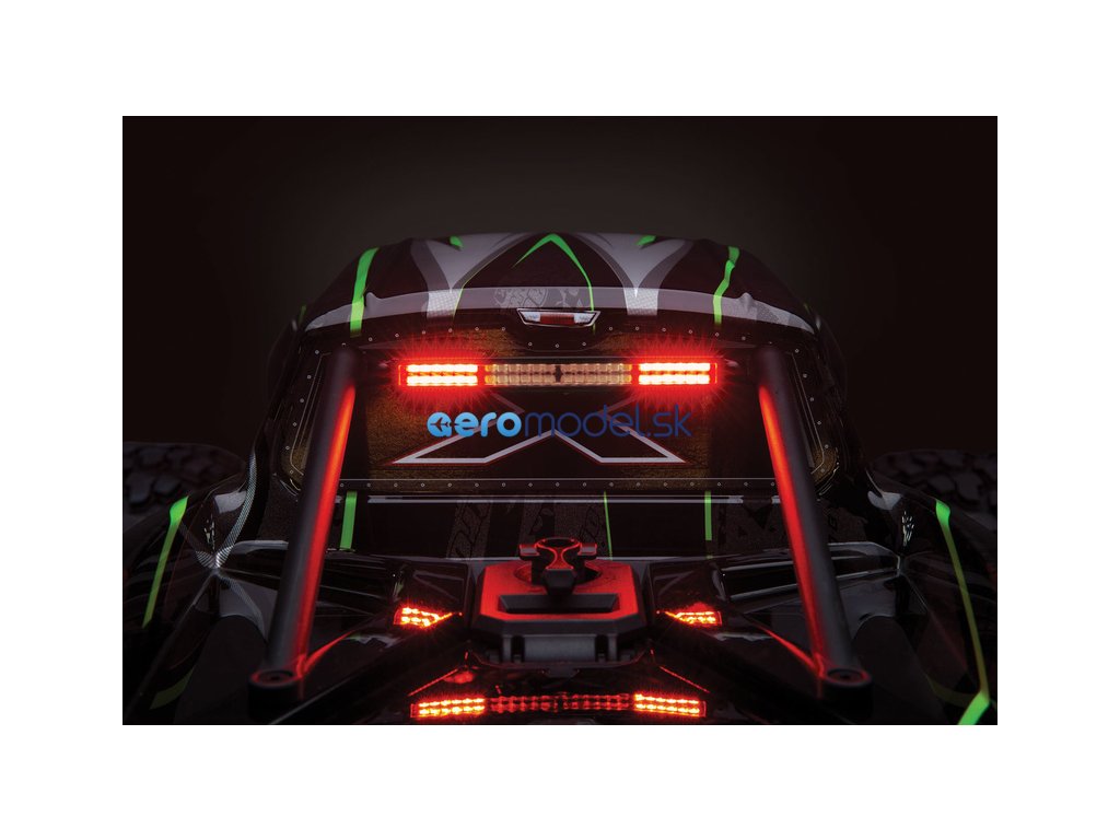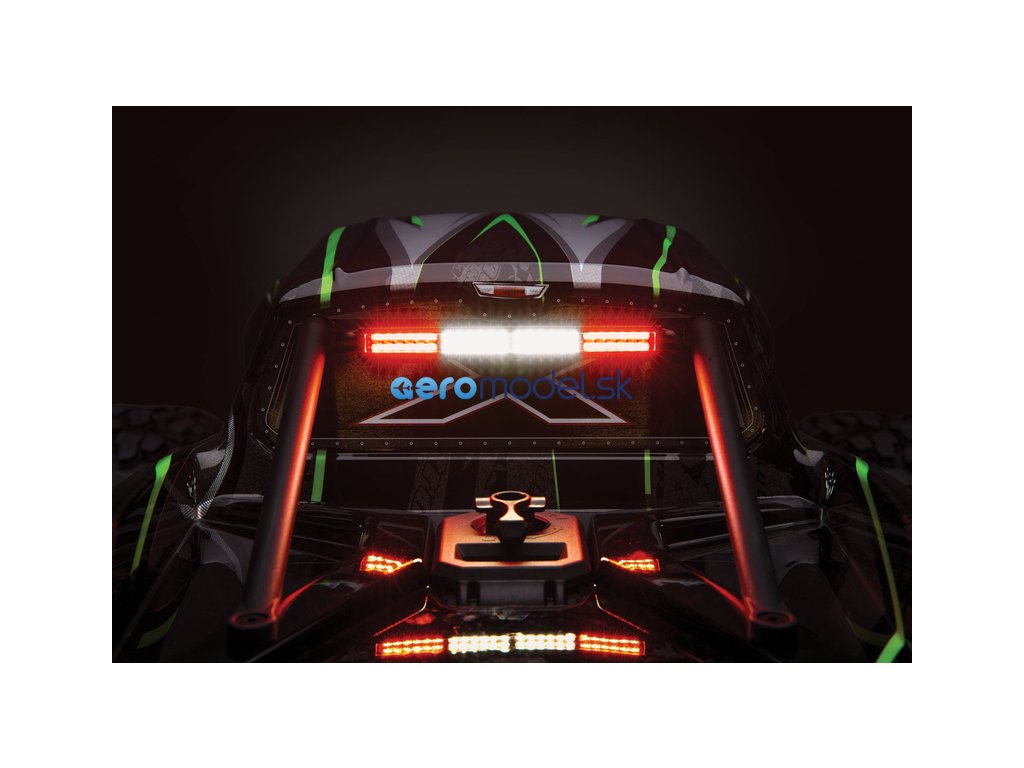 Traxxas kompletní LED osvětlení pro RC model auta Traxxas 1:5 X-Maxx / 1:6 XRT / 1:5 X-Monster. Posuňte Váš model na novou úroveň a užijte si dech beroucí jízdu ve dne i v noci. Přední LED lišta do nárazníku bezpečně nasvítí cestu před Vámi, zatím co zadní brzdová lišta dodá modelu šmrnc, díky brzdovým světlům, které fungují opravdu jen když brzdíte.