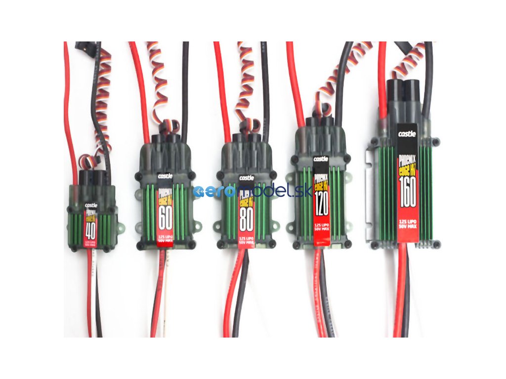 Špičkový regulátor Phoenix Edge 60 HV od Castle Creations je určen pro vrtulníky a letadla. Napájení 3 až 12 čl. LiPol akumulátorů, max. trvalý proud 60 A. Pro dobrý obvod tepla vznikajícího v tranzistorech je regulátor po svém obvodu vybaven velkým chladičem. Regulátor neobsahuje zdroj BEC.