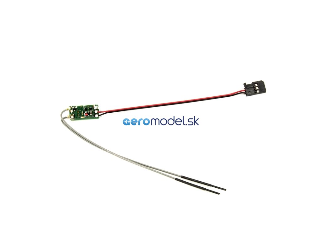 Přijímač je opatřen třížilovým výstupním S.BUS kabelem se servokonektorem Futaba. S.BUS výstup má max. 8 kanálů.