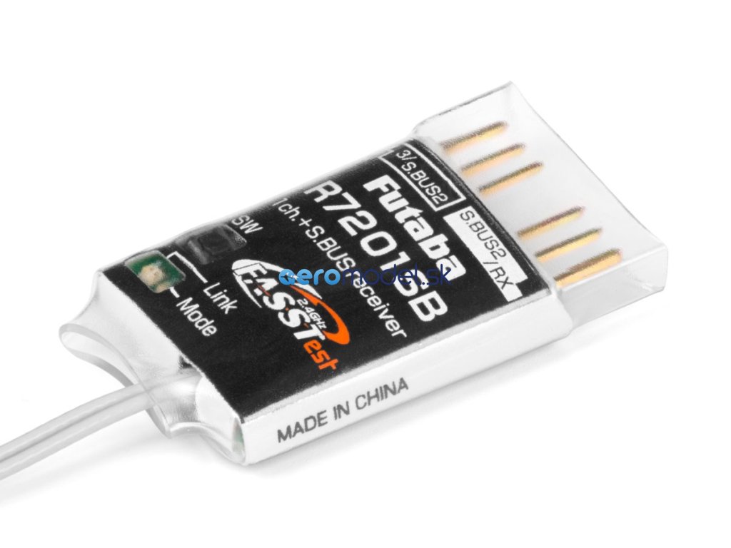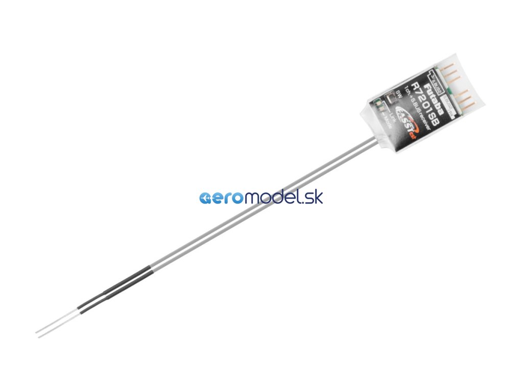 Malý a velmi lehký telemetrický přijímač Futaba přenosového systému FASSTest 2.4GHz s dvojicí diverzitních antén s plným dosahem. Je určen pro předevšímpoužití v dronech a jiných modelech používající řídící jednotky komnikující po sběrnicích S.BUS nebo S.BUS2.; díky kompaktním rozměrům a velmi nízké hmotnosti je vhodný i pro malé modely letadel s S.BUS/S.BUS2 servy a výborně se hodí jako záložní přijímač v dvoupřijímačovém provozu s jinými FASSTest přijímači. Volitelné kanálové režimy R7201SB umožňují jedné zásuvce fungovat jako klasický PWM kanálový výstup (kanál 3)/S.BUS2 nebo S.BUS port; druhá zásuvka má funkci S.BUS2 portu nebo slouží pro připojení druhého přijímače v dvoupřijímačovém provozu. S.BUS2 port pro obousměrnou komunikaci umožňuje připojení S.BUS2 serv, telemetrických čidel a dalších kompatibilních zařízení. Provozní stavy přijímače jsou signalizovány LED indikátorem.