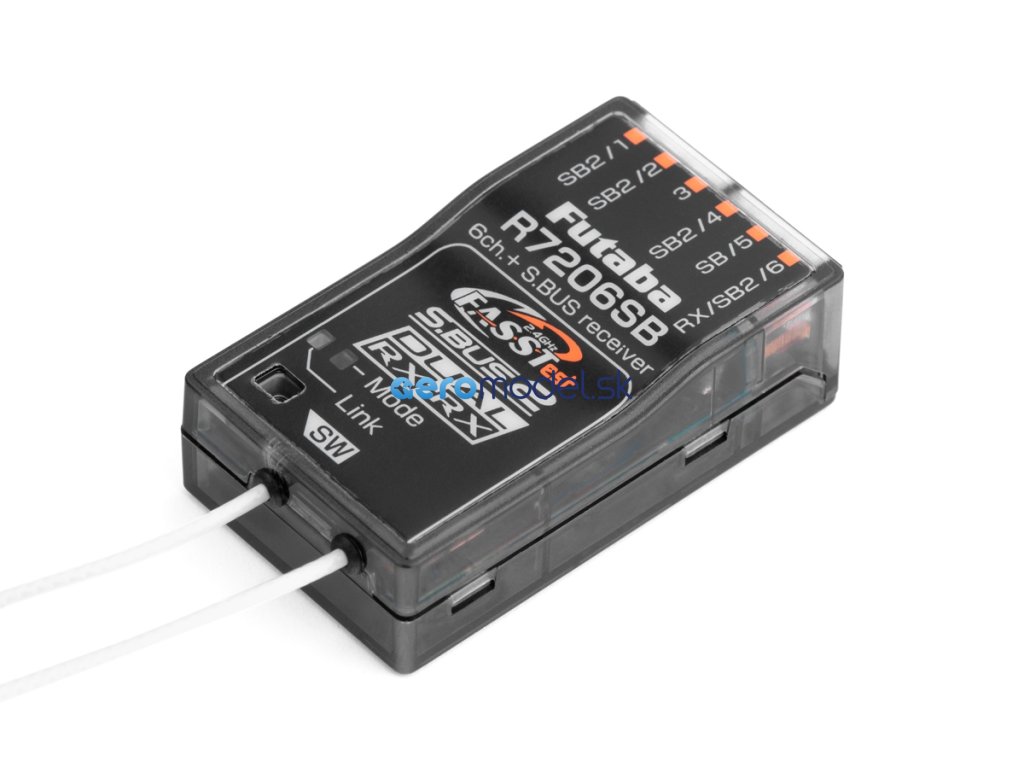 Šestikanálový telemetrický přijímač Futaba přenosového systému FASSTest-2.4GHz s dvojicí diverzitních antén s plným dosahem. Je určen pro všeobecné použití v modelech všech kategorií; díky kompaktním rozměrům, nízké hmotnosti a konektorům zasouvaným v podélné ose je vhodný i pro modely se štíhlým trupem, jako jsou větroně F3B, F3J apod. Díky volitelným kanálovým režimům a možnosti dvoupřijímačového provozu výborně poslouží i v modelech vyžadujících velký počet kanálů – v takovém případě dvojice R7206SB poskytne až 16 klasických PWM kanálových výstupů nebo 10-12 PWM výstupů, S.BUS sériový výstup a S.BUS2 pro obousměrnou komunikaci umožňující připojení S.BUS2 serva, telemetrických čidel a dalších kompatibilních zařízení, jako S.BUS2 porty mohou sloužit také zásuvky kanálů 1, 2, 4 a 6. Provozní stavy přijímače jsou signalizovány LED indikátorem.