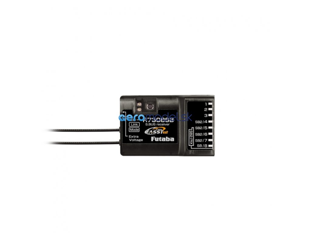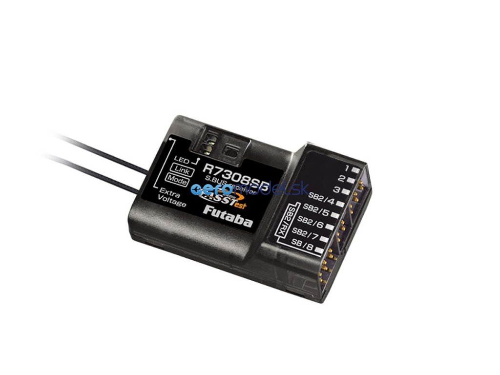 Osmikanálový telemetrický přijímač Futaba přenosového systému FASSTest-2.4GHz s dvojicí diverzitních antén s plným dosahem. Je určen pro všeobecné použití v modelech všech kategorií; díky kompaktním rozměrům, nízké hmotnosti a konektorům zasouvaným v podélné ose je vhodný i pro modely se štíhlým trupem, jako jsou větroně F3B, F3J apod. Díky volitelným kanálovým režimům a možnosti dvoupřijímačového provozu výborně poslouží i v modelech vyžadujících velký počet kanálů – v takovém případě dvojice R7308SB poskytne až 16 klasických PWM kanálových výstupů nebo 14-15 PWM výstupů a 1-2 S.BUS sériové výstupy. Kromě toho je přijímač vybaven portem S.BUS2 pro obousměrnou komunikaci umožňující připojení S.BUS2 serva, telemetrických čidel a dalších kompatibilních zařízení, jako S.BUS2 porty mohou sloužit také zásuvky kanálů 4-7. Provozní stavy přijímače jsou signalizovány LED indikátorem.