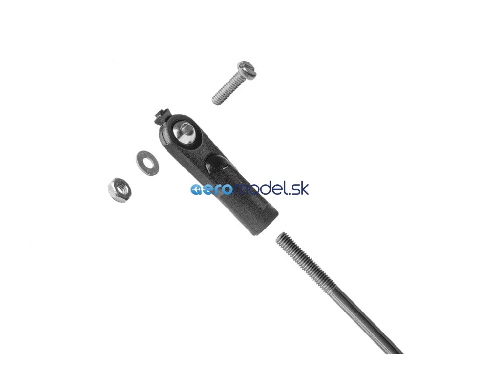 Plastový kloubek M2,5 s mosaznou kuličkou a ocelovým táhlem, 1 ks.