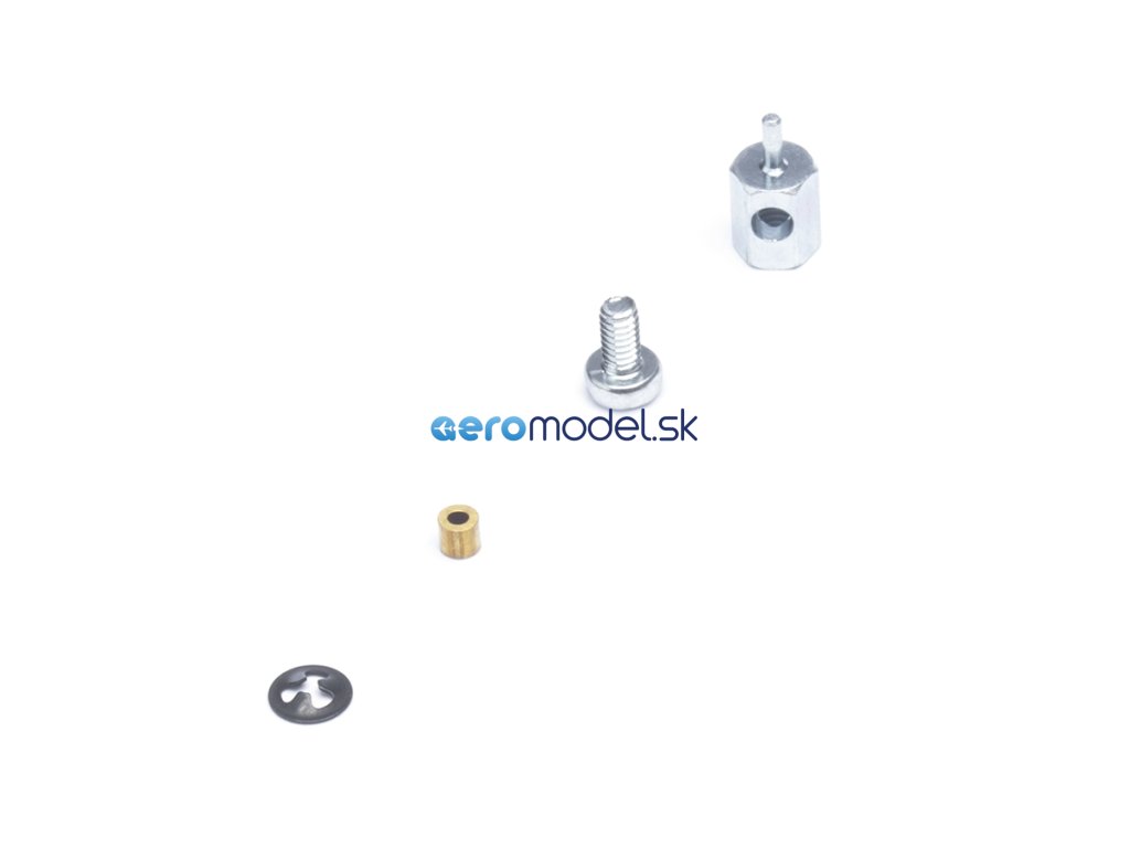 Určeno pro použití s mikro servy a modely poháněnými elekromotorem. Upevňovací hřídel o průměru 1mm je vhodná pro všechny druhy pák na mikro servech. Koncovka je použitelná i s pákou na servech standartní velikosti. Stačí nasunout mosazné pouzdro na upevňovací hřídel a zvětšit otvor v servo páce na průměr 1,6-2mm. Šestiúhelníkový tvar koncovky je snadné uchytit do kleští při utahování šroubku. Použitelné pro táhla o průměru 0,5 až 2mm. Včetně pojistky hřídele z pružinové oceli pro upevnění k servopáce. Vyrobeno z poniklované oceli.