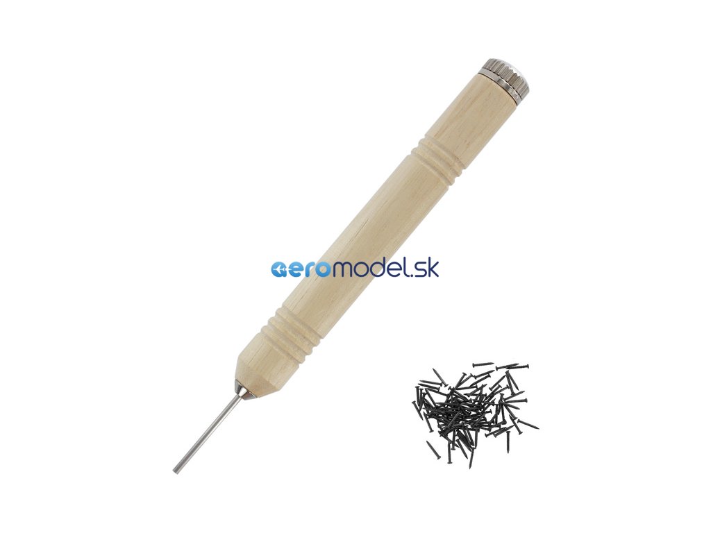 Modelcraft zatloukač hřebíků, ocelové hřebíky 0,7x6mm (100ks). Vhodný všude tam, kde je potřeba mít mini spoje, např. železniční či lodní modeláři, čalounění, dekorace, hobby. Celková délka 150mm, průměr rukojeti 15mm, průměr trubičky 2mm, hmotnost 33g.