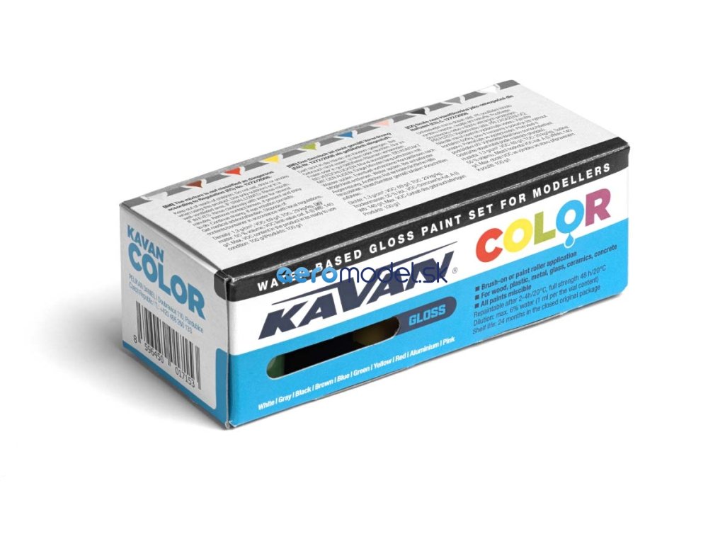 Sada vodou ředitelných lesklých akrylických barev pro modeláře KAVAN Color.