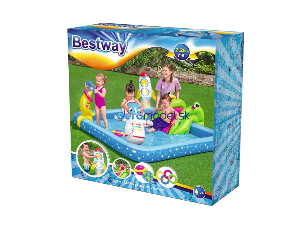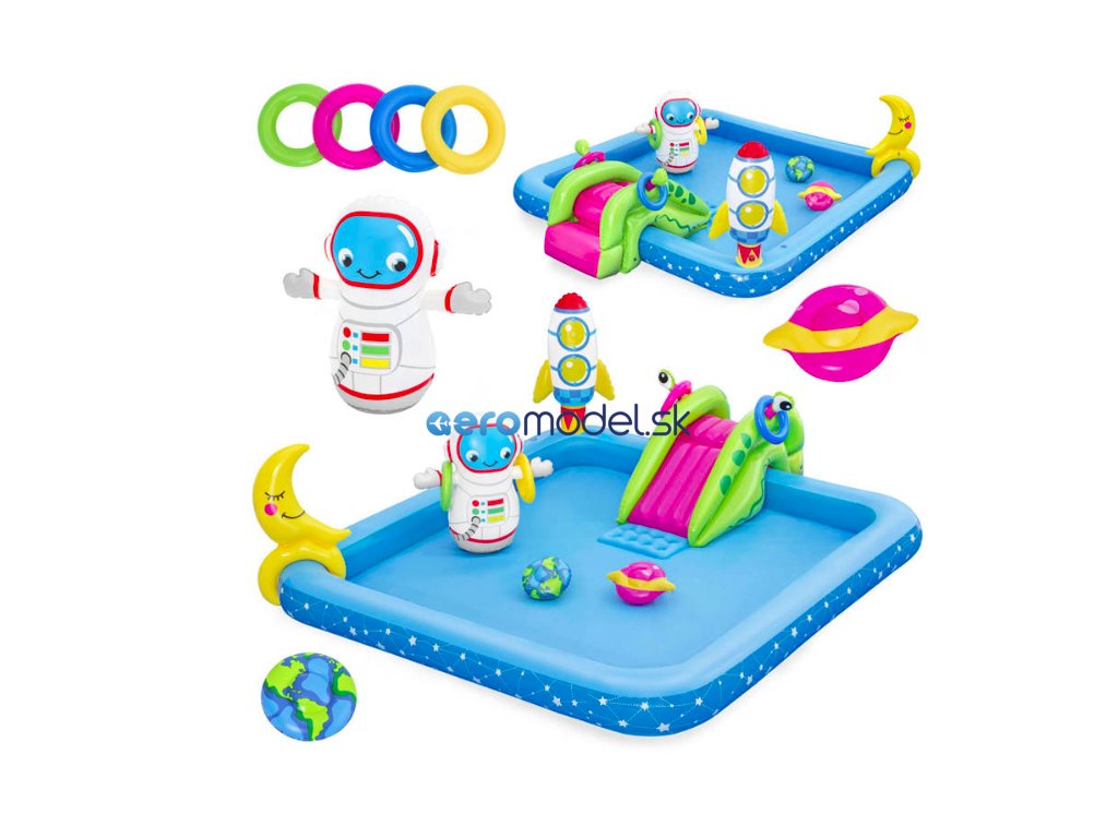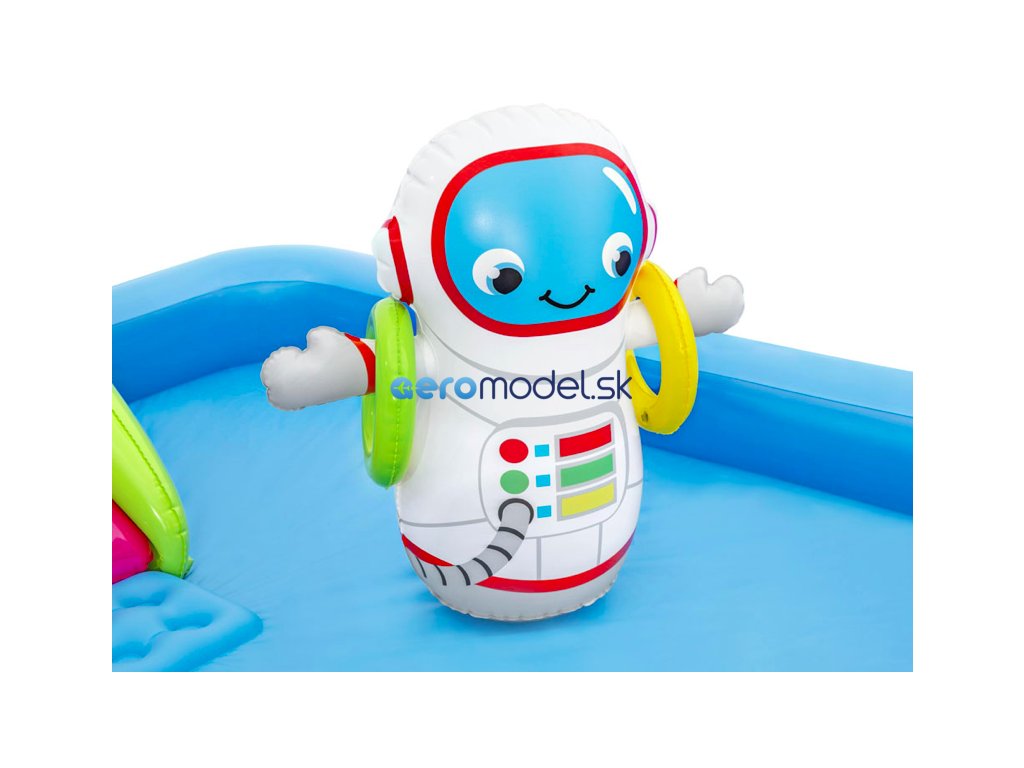 Veľké vodné ihrisko s impozantnými rozmermi 228 cm x 206 cm x 84 cm v zaujímavej, kozmickej grafike poskytne veľa radostnej zábavy a nezabudnuteľných zážitkov.