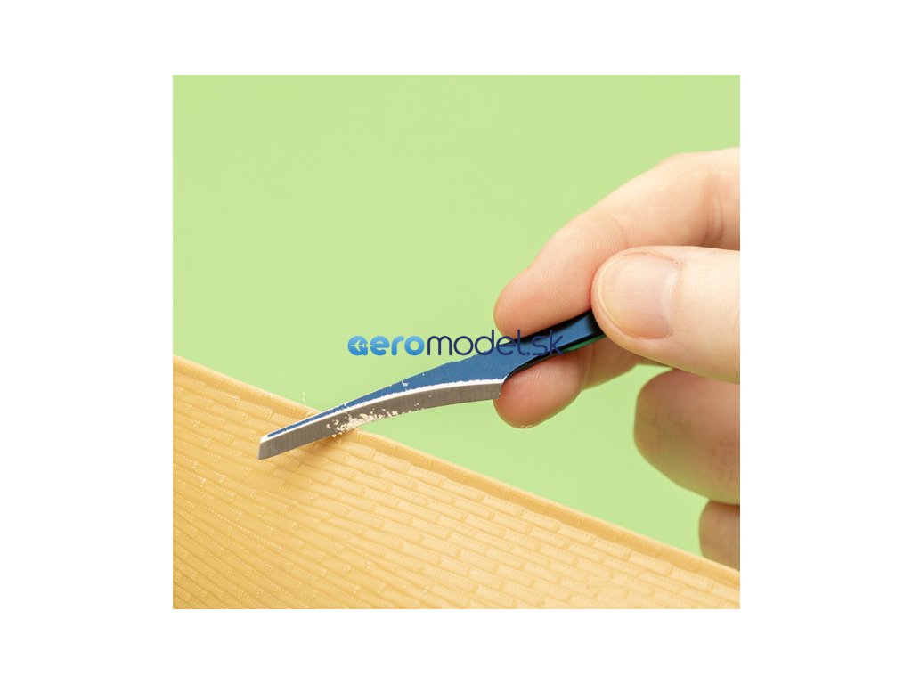 Dlouhý, zakřivený okraj je ideální pro modelování, řemeslné a šperkařské práce. Používá se k ořezávání přebytečného materiálu, škrábání a čištění linek forem a vyřezávání měkkých materiálů. Používá se také pro sochařství jílů, polymerů a tmelů. Ideální pro vyřezávání, vyhlazování a tvarování.