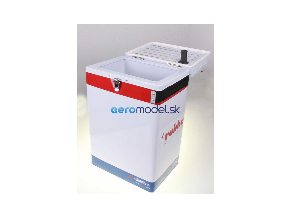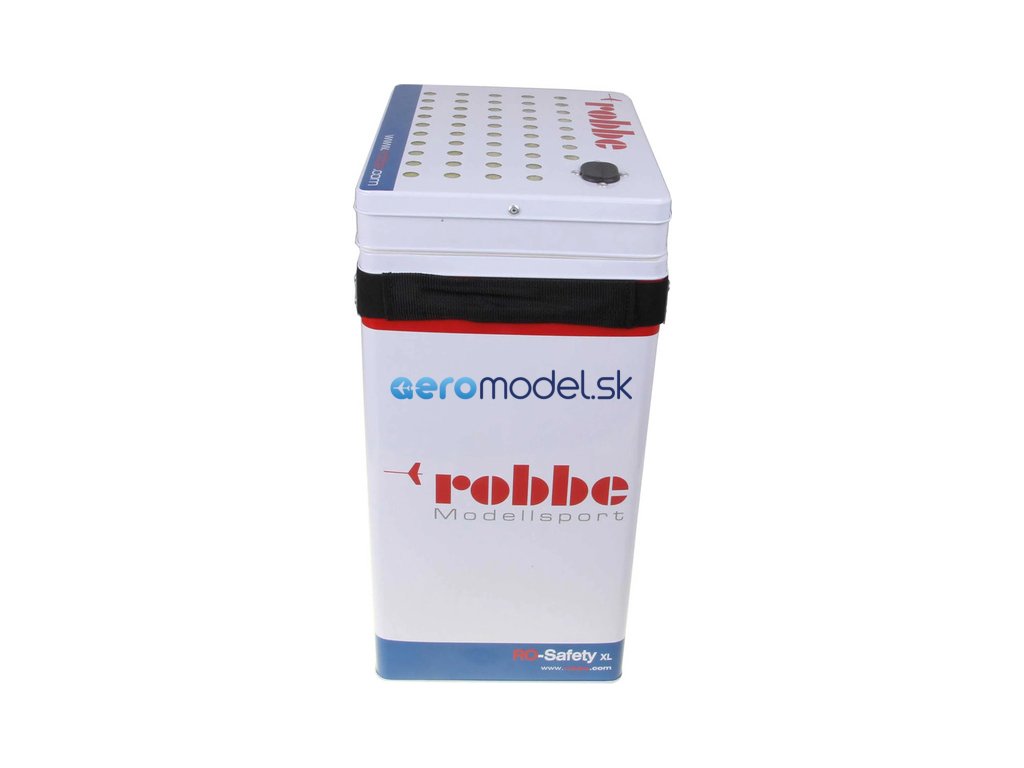 Bezpečnostní kovový kufr je určen k minimalizování rizika spojeného s nabíjením a uskladněním akumulátorů. Bezpečností nehořlavé průchodky umožňují vstup nabíjecích kabelů do kufru. V případě požáru baterií může výsledný tlak uvnitř uniknout ven skrz bezpečnostní horními ventilačními otvory, zároveň se kouř filtruje, aby se žádné škodlivé látky neuvolňovaly ven. Uvnitř kovového kufru může dojít k požáru až 800 °C. Díky speciální izolaci se podlaha a stěny boxu ohřejí maximálně na 80 °C. Unikající plyn se nezahřeje na více než 150 °C.