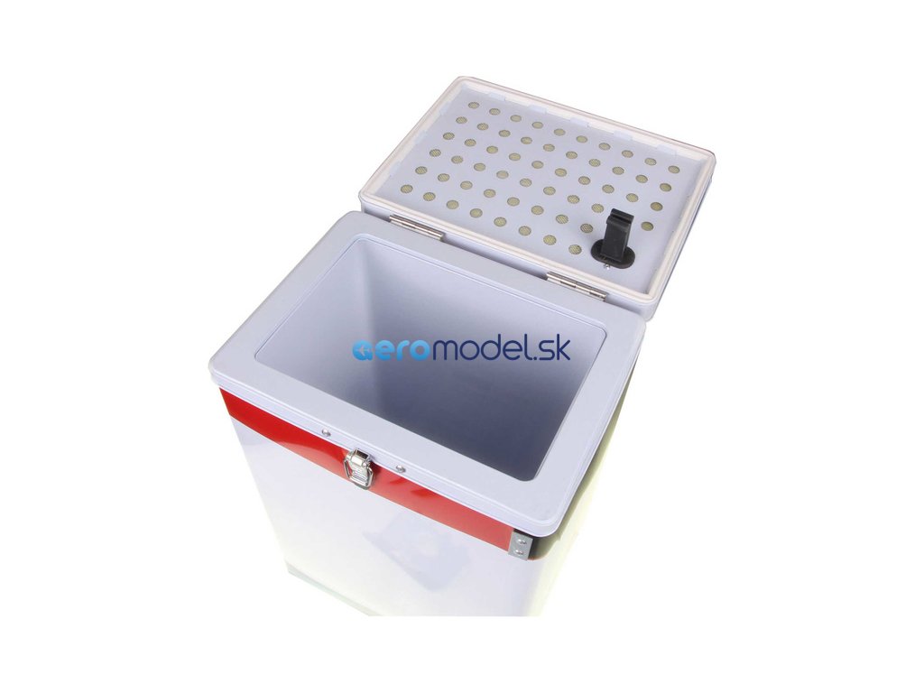 Vnitřní prostor o rozměru 250 x 165 x 380 mm, umožňuje uložení až 6 kusů akumulátorů LiPo 6S 5000mAh. Vnější rozměry: 300 x 220 x 455 mm.