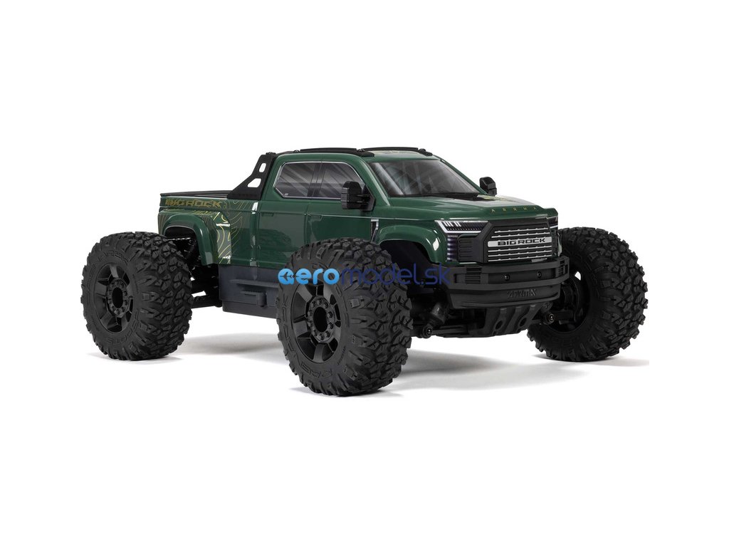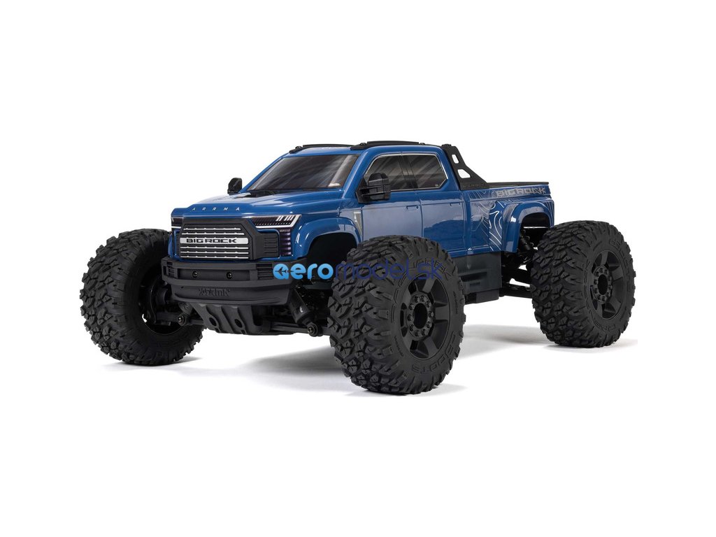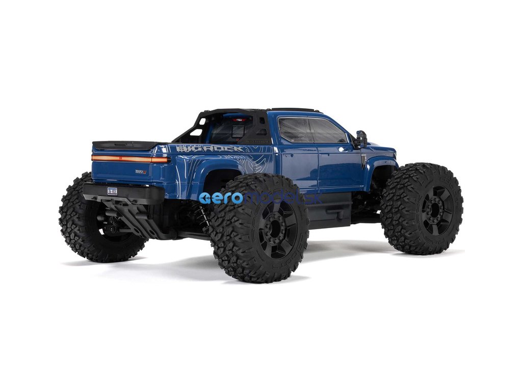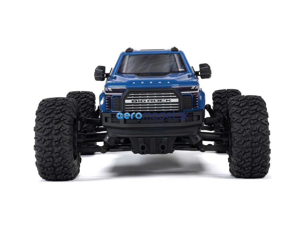 RC model auta Arrma Big Rock 223S BLX typu Monster truck s náhonem 4WD, nezávislým zavěšením, olejovými tlumiči a výkonným střídavým pohonem, dosáhne rychlosti až 80 km/h. To vše za dostupnou cenu pro takto výkonný model. Výborné jízdní vlastnosti zajišťuje pohon všech kol se středovým a nápravovými diferenciály. Obsažena je exkluzivní stabilizace jízdy DSC. RC auto je určeno pro děti, dospělé, začátečníky i zkušené jezdce, kteří získají hotový, odolný a rychlý model. Bezsponková karoserie s dlouhou korbou je ztělesněním agresivního stylu nákladních pick-up vozidel.