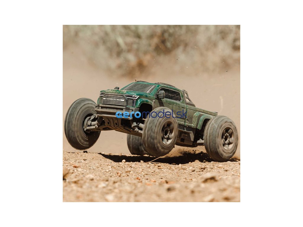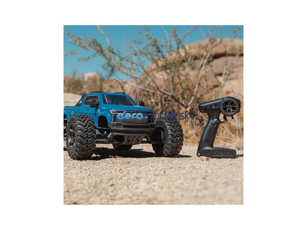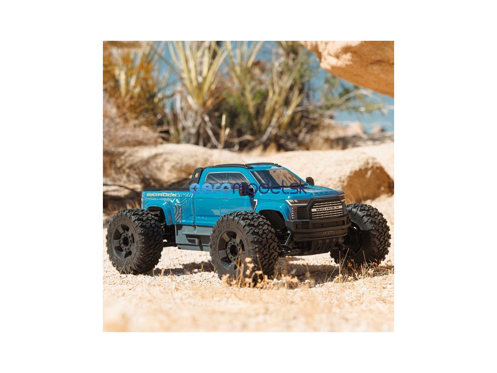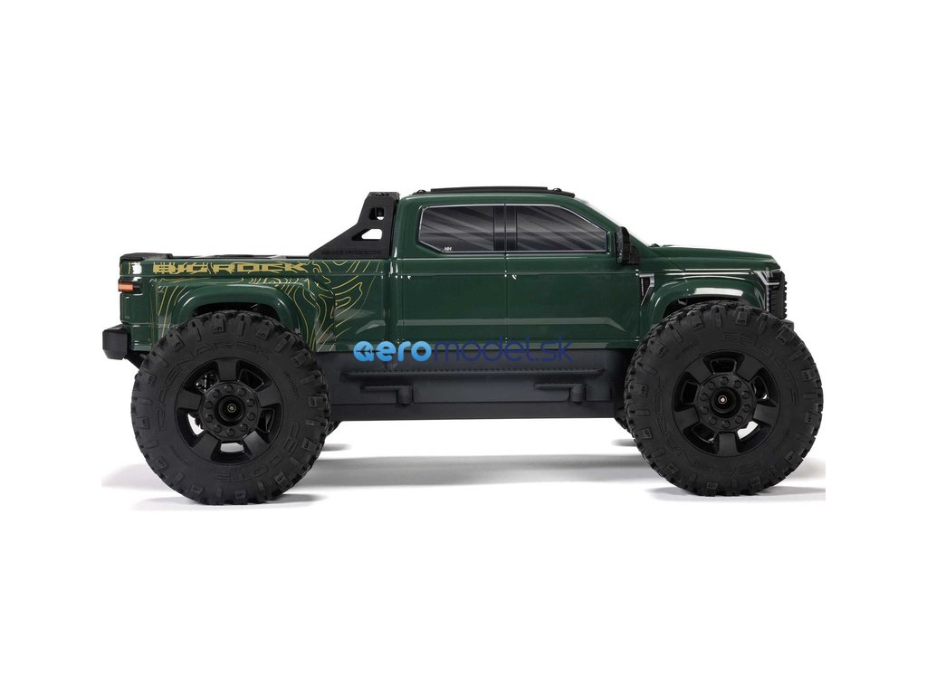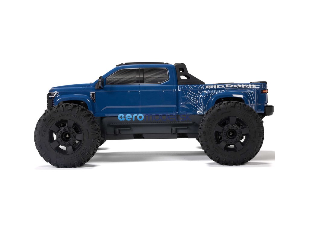 RC model auta Arrma Big Rock 223S BLX typu Monster truck s náhonem 4WD, nezávislým zavěšením, olejovými tlumiči a výkonným střídavým pohonem, dosáhne rychlosti až 80 km/h. To vše za dostupnou cenu pro takto výkonný model. Výborné jízdní vlastnosti zajišťuje pohon všech kol se středovým a nápravovými diferenciály. Obsažena je exkluzivní stabilizace jízdy DSC. RC auto je určeno pro děti, dospělé, začátečníky i zkušené jezdce, kteří získají hotový, odolný a rychlý model. Bezsponková karoserie s dlouhou korbou je ztělesněním agresivního stylu nákladních pick-up vozidel.