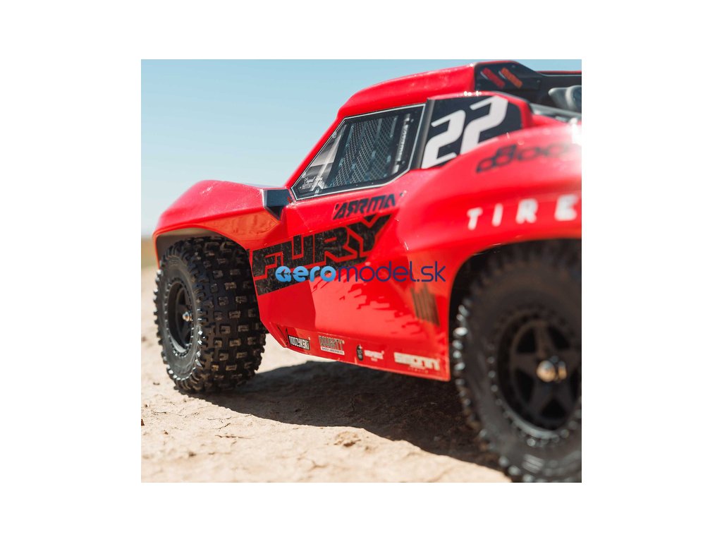 RC model auta Arrma Fury Mega 550 1:10 RTR typu Short Course s náhonem 2WD, nezávislým zavěšením, olejovými tlumiči, proporcionálním řízením a stejnosměrným motorem. Jako jeden z cenově nejdostupnějších RC aut v měřítku 1:10 zaujme především začínající řidiče a děti. Díky plnohodnotné výbavě je však vhodný i pro zkušenější jezdce. Model zachovává všechny přednosti modelů značky Arrma jako je odolnost, vysoký výkon a podpora dílů.