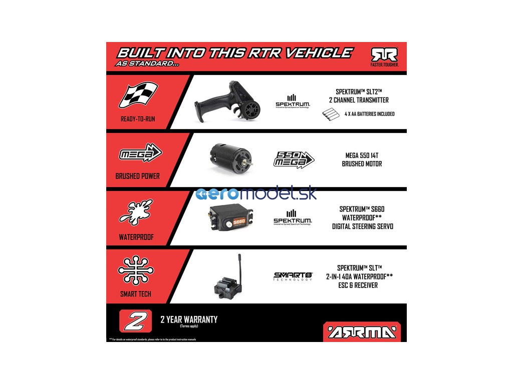 Model obsahuje kvalitní značkovou elektroniku Spektrum, která zaručuje bezproblémovou jízdu a snadné ovládání. Stačí se jen bavit.