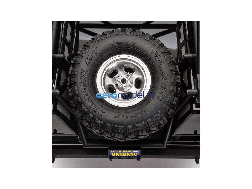 Repliky pneumatík Falken Wildpeak M/T 1.9 sú realistické a majú a vynikajúcu priľnavosť pri lezení po skalách a kopcoch. Auto má tiež pripravenú náhradnú pneumatiku Axial®.