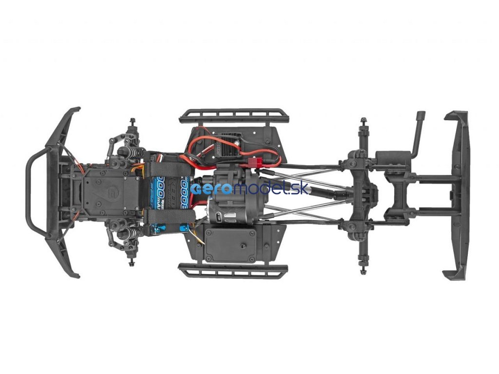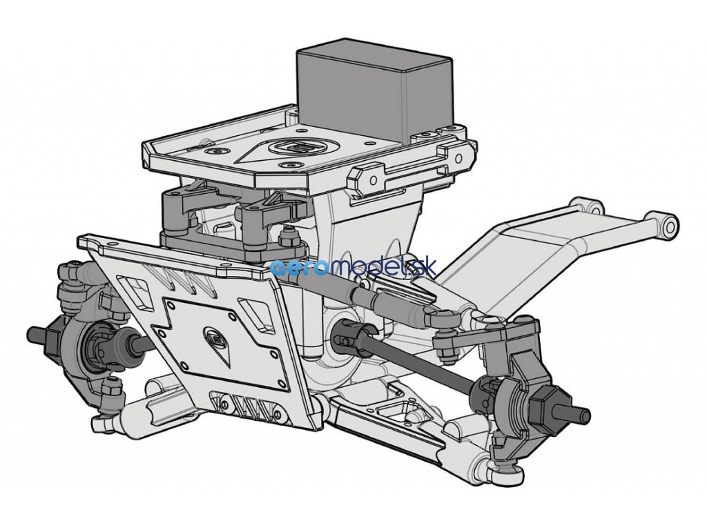 Zavěšení: Odolná vstřikovaná horní a dolní ramena zavěšení s optimalizovanými kulovými čepičkami poskytují maximální kloubovost zavěšení spolu s moderním vzhledem měřítka zavěšení terénních vozidel.
