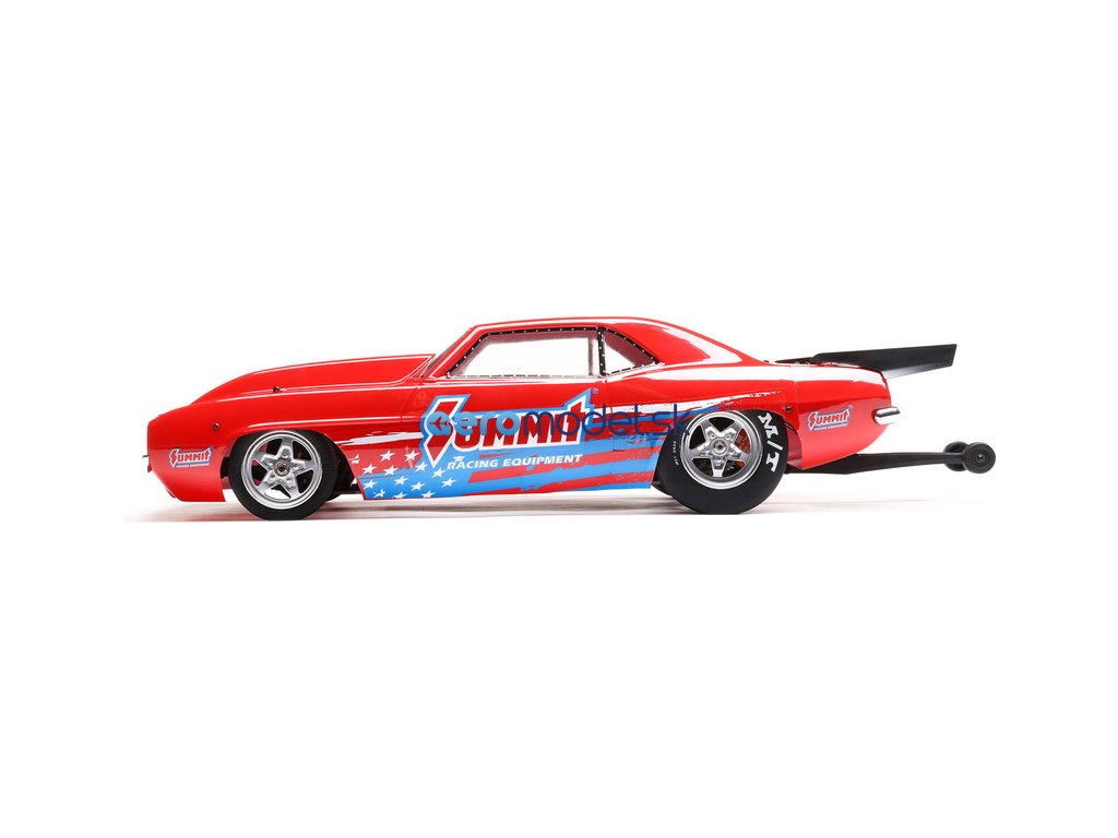RC model rychlostního auta Losi 22S Dragster 1:10 69 Camaro RTR pro závody na přímé trati, s inovativním designem a kvalitním zpracováním. Má všechny výhody hliníkového šasi, ochranu elektroniky a ochranné kryty proti bočnímu nárazu. Oficiálně licencované pneumatiky Mickey Thompson, tlumiče plněné olejem, nízké těžiště. Nastavitelný přední nárazník, zvýšená převodovka, nastavitelné napínáky, celokovová převodovka. Spolehlivý vysílač Spektrum™ SLT3 a přijímač SR315 s duálním protokolem, střídavý regulátor Spektrum Firma™ 100A Smart se střídavým motorem Spektrum Firma 6500kv. Robustní maketová hotová karoserie 69 Camaro z lexanu 1,2mm.