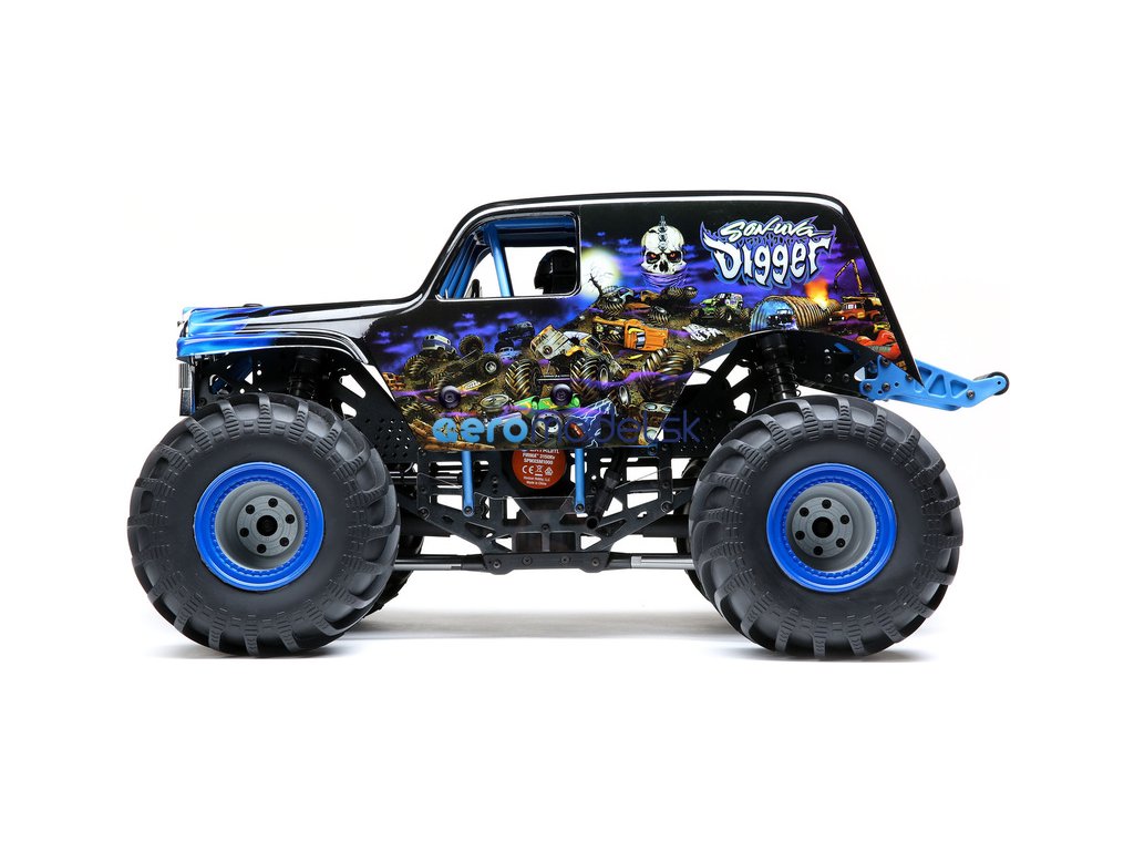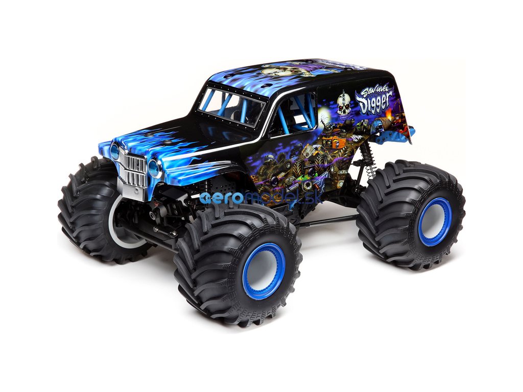 Mezi legendami soutěží Monster Jam jsou i speciály Grave Digger a Son Uva Digger. Tyto legendární auta nabízí jako RC modely firma Losi v měřítku 1:8. Mají od základu novou konstrukci, rám tvoří svislé bočnice z pevnostního hliníku 6061-T6, mezi kterými je umístěna elektronika s pohonem a baterií. Přední a zadní tuhá náprava jsou zavěšeny na čtyřech bodech a odpruženy olejovými tlumiči s extra dlouhým zdvihem. Auto má centrální diferenciál, teleskopické drážkované hřídele a kardanové klouby. V pevných nápravách jsou klasické kuželové diferenciály, které lze v případě potřeby vyměnit za volitelné pevné. Karosérie je výklopná a proto máte kdykoli snadný přístup k šasí, elektronice a baterii. Přední světla svítí, mají integrované LED osvětlení, které je tónováno k barvě karosérie.