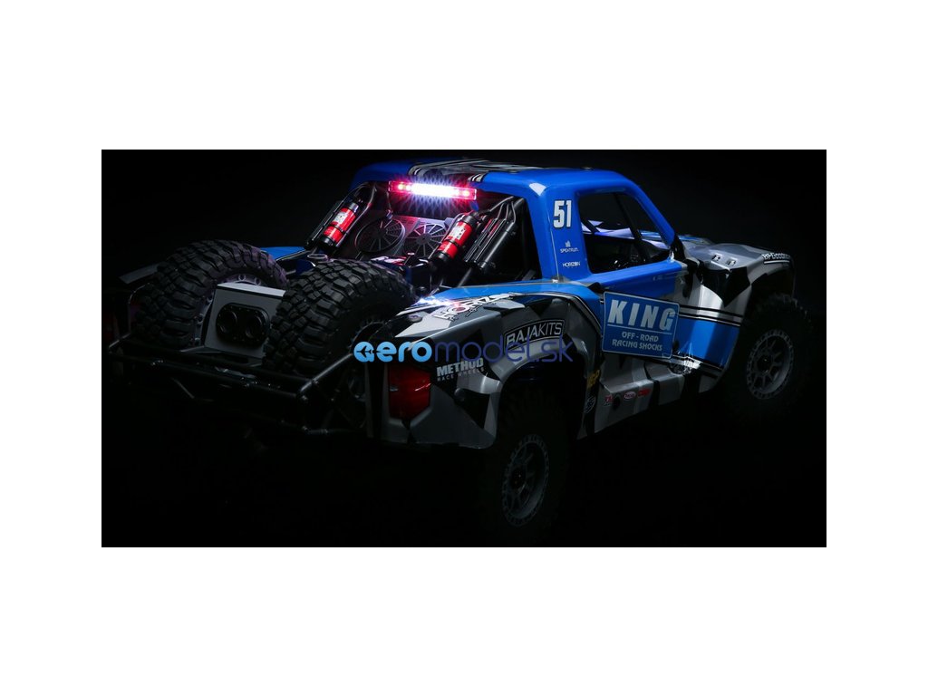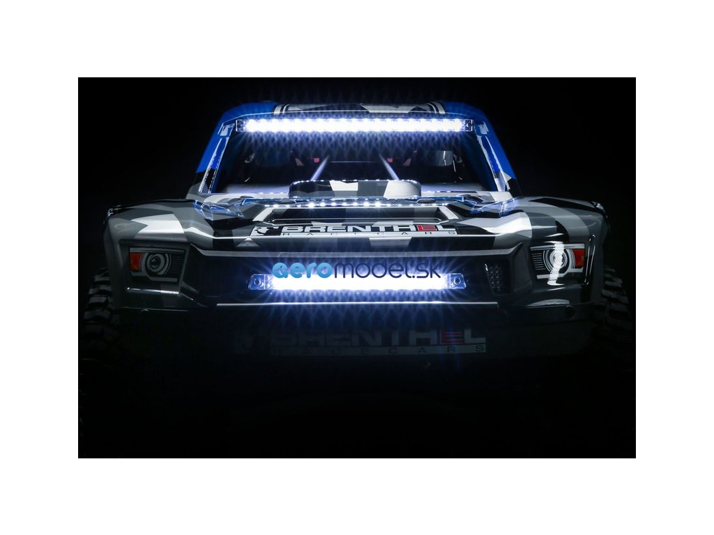 Zábava nikdy nekončí! RC model je vybavený tromi svetelnými LED lištami. Predná svetelná lišta v nárazníku spolu so strešnou lištou poskytujú silný prúd svetla, ktorý osvetľuje cestu ďaleko pred vami. S treťou, zadnou svetelnou lištou model nielen skvele vyzerá, ale červené LED diódy umožňujú lepší prehľad o polohe modelu aj na väčšiu vzdialenosť.